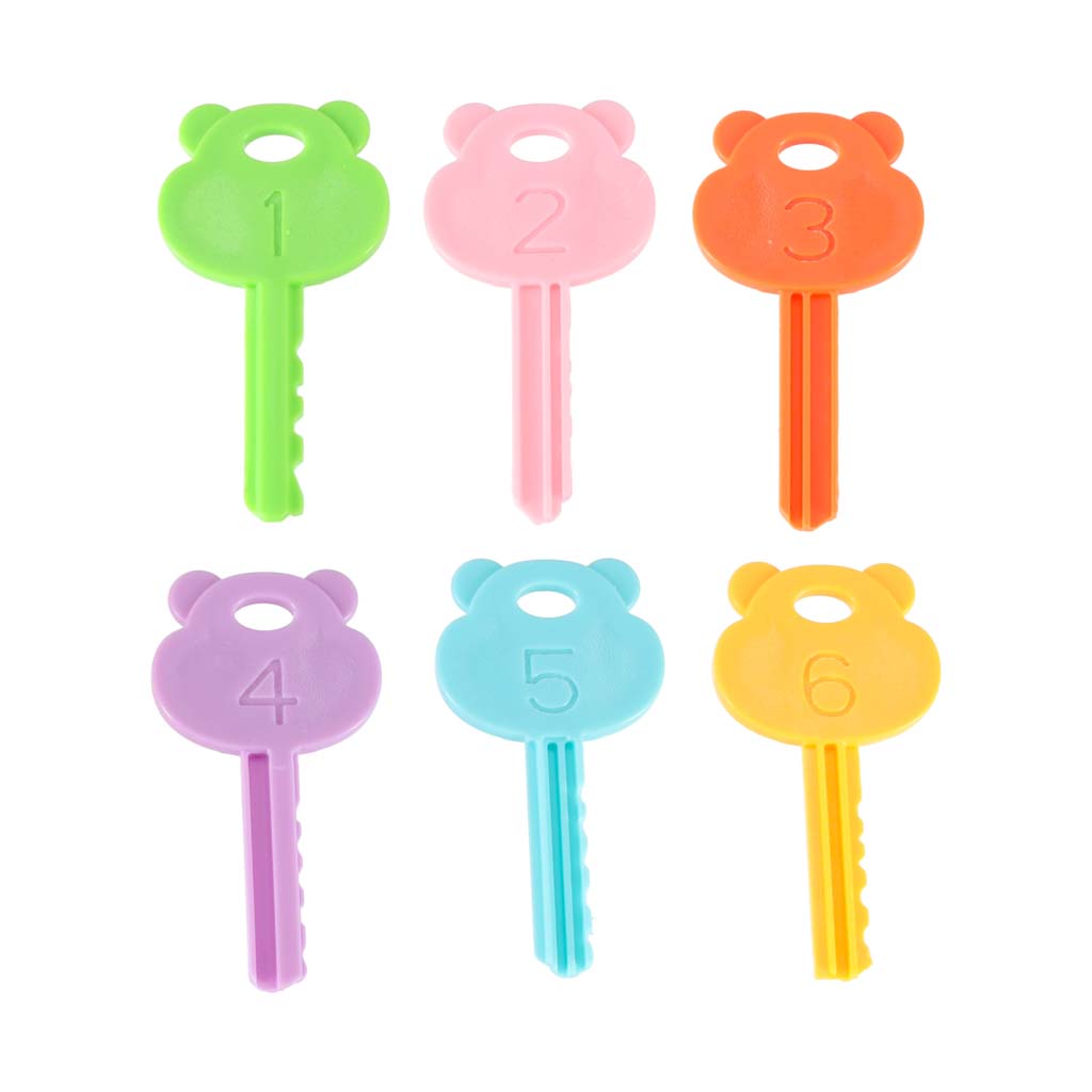 klucze od 1 do 6 – klucze są przypisane kolorystycznie do kłódek i