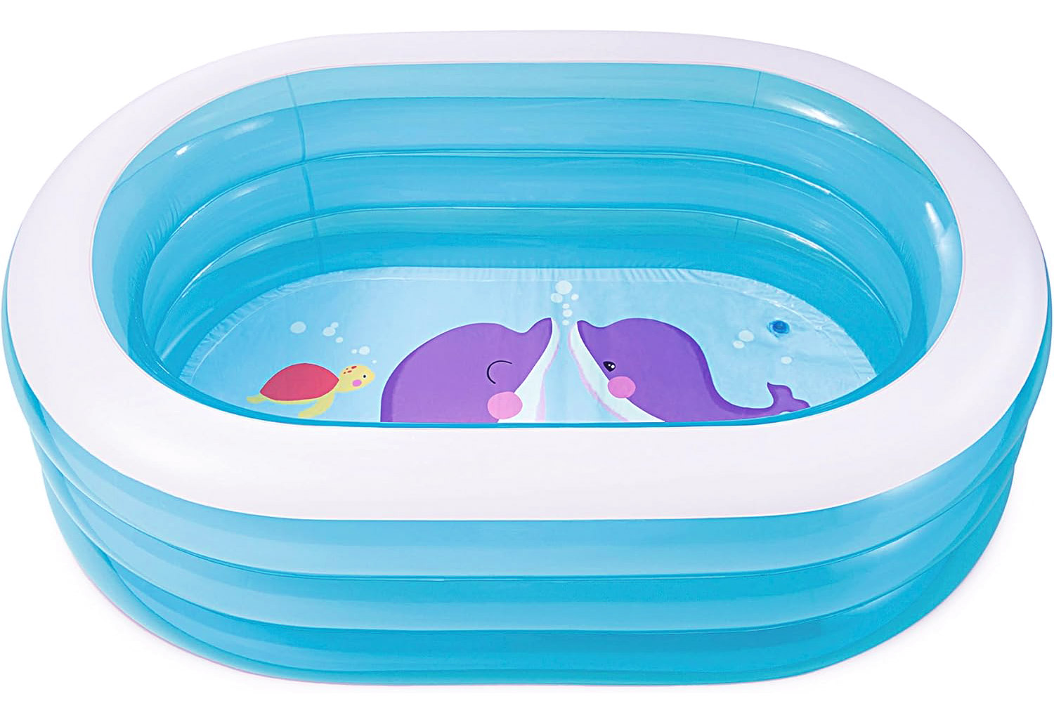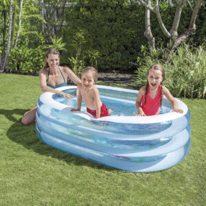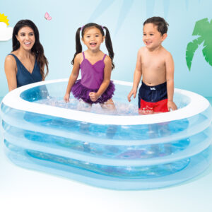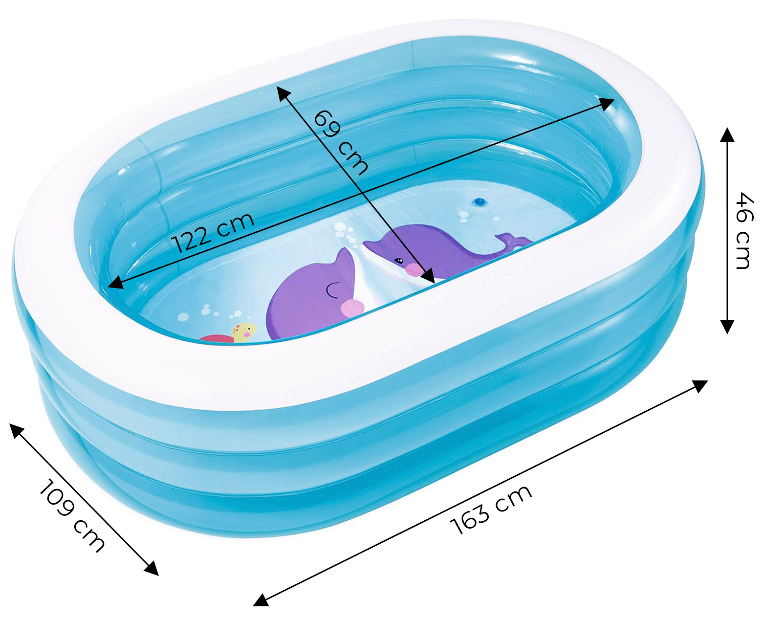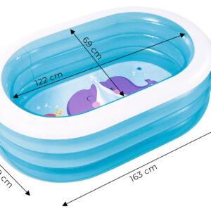 - Trwały materiał – basen wykonano z wysokiej jakości PVC o grubości 0,30 mm, co gwarantuje wytrzymałość i odporność na przetarcia oraz uszkodzenia. Solidna konstrukcja składająca się z 3 dmuchanych ringów sprawia, że jest odporny na intensywną zabawę dzieci, a jego trwałość pozwala cieszyć się nim przez wiele sezonów.