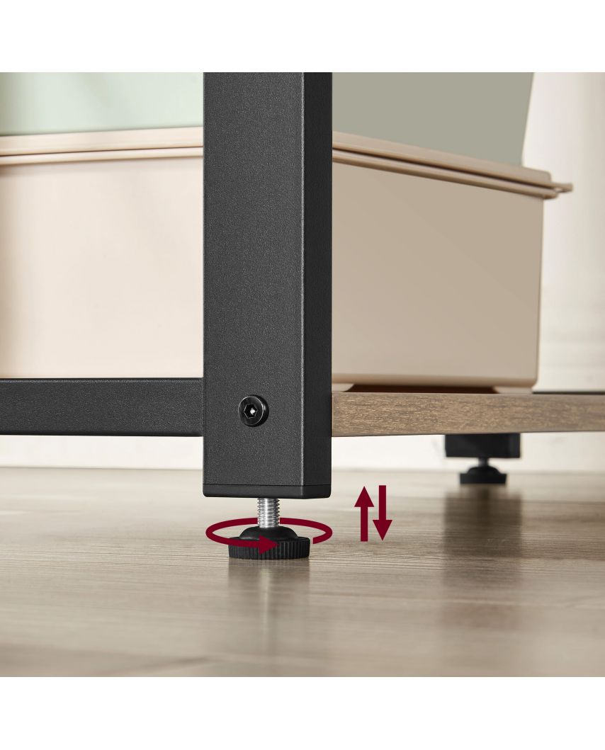 Stalowa konstrukcja biurka gwarantuje stabilność i wytrzymałość przez wiele lat, dodatkowo regulowane nóżki sprawdzą się idealnie przy nierównych powierzchniach. Dzięki nim, odpowiednio wypoziomujesz mebel do podłogi.