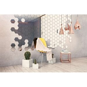 Dekoracyjne lustro akrylowe Hex – srebrne