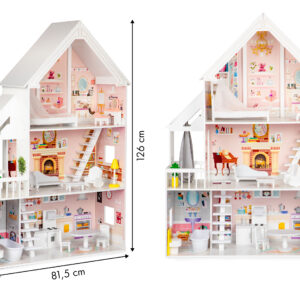 Domek dla lalek marki ECOTOYS zawdzięcza swój urok dobrze dobranej kolorystyce oraz specjalnie zaprojektowanym pomieszczeniom. To sprawia, że będzie się świetnie prezentował nie tylko w pokoju Twojej pociechy, ale także w salonie, budząc przy tym zachwyt wszystkich domowników.