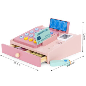 Drewniana kasa fiskalna to doskonała propozycja dla dzieci, które z radością wcielają się w rolę sprzedawcy. Realistyczne elementy – takie jak skaner, terminal płatniczy, wysuwana szuflada czy karta – sprawiają, że zabawa staje się nie tylko wciągająca, ale i edukacyjna. Zestaw rozwija wyobraźnię, zdolności manualne oraz umiejętność liczenia, wprowadzając dziecko w fascynujący świat zakupów i finansów. Zaokrąglone krawędzie i pastelowe kolory sprawiają, że kasa jest nie tylko funkcjonalna, ale i estetyczna. To coś więcej niż zwykła zabawka – to pełne wartości doświadczenie, które uczy przez zabawę. Zamów już teraz i otwórz przed dzieckiem drzwi do kreatywnej przygody!