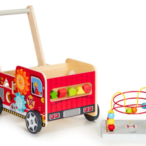 Drewniany pchacz edukacyjny z klockami dla dzieci straż pożarna ECOTOYS