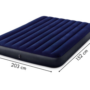 Materac welurowy INTEX o wymiarach 203x152x25 cm jest idealny do wypoczynku 2 osób. Wykonany z wytrzymałego tworzywa PVC, na górze został pokryty przyjemnym w dotyku, wodoszczelnym materiałem welurowym. Całość w przyjemnej, niebieskiej kolorystyce będzie pasowała do każdego wnętrza.