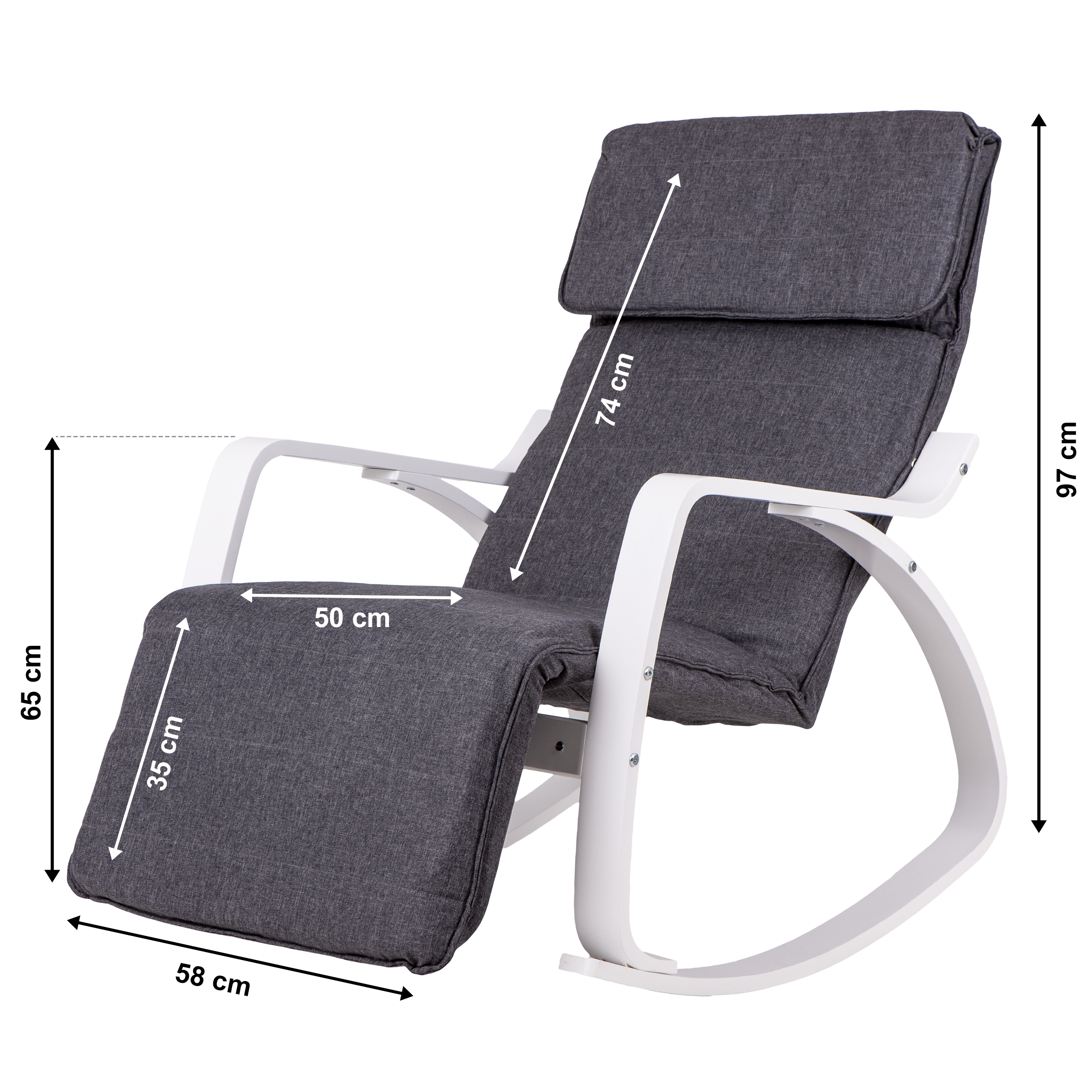 Fotel bujany regulowany podnóżek biała rama ModernHome