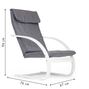 Stelaż fotela został wykonany z giętej „na ciepło” sklejki brzozowej. Jest to powszechnie używany w meblarstwie materiał, który cechuje się wysoką trwałością – ma większą odporność na zginanie niż stal, dodatkowo jest przyjazny dla środowiska. Specjalnie wyprofilowany stelaż ugina się pod ciężarem użytkownika, dzięki czemu umożliwia lekkie bujanie się.