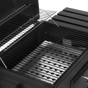Zamykana pokrywa w grillu to klucz do perfekcyjnego grillowania. Dzięki niej ciepło rozchodzi się równomiernie, co sprawia, że potrawy są bardziej soczyste i dokładnie przypieczone. Pokrywa pomaga też utrzymać stałą temperaturę, dzięki czemu grillowanie jest łatwiejsze i bardziej efektywne. To idealne rozwiązanie dla miłośników steków, burgerów i grillowanych warzyw. Ciesz się intensywniejszym smakiem i mniejszym zużyciem węgla.