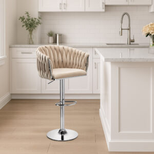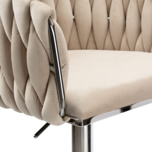 Stylowy hoker welurowy Cofton Chrom w kolorze beżowym to połączenie elegancji, komfortu i funkcjonalności. Idealny do nowoczesnych kuchni, wysp kuchennych czy stylowych barów domowych. Dzięki miękkiej tapicerce z weluru oraz solidnej, chromowanej podstawie, zapewnia wygodę podczas siedzenia i dodaje wnętrzu luksusowego charakteru.