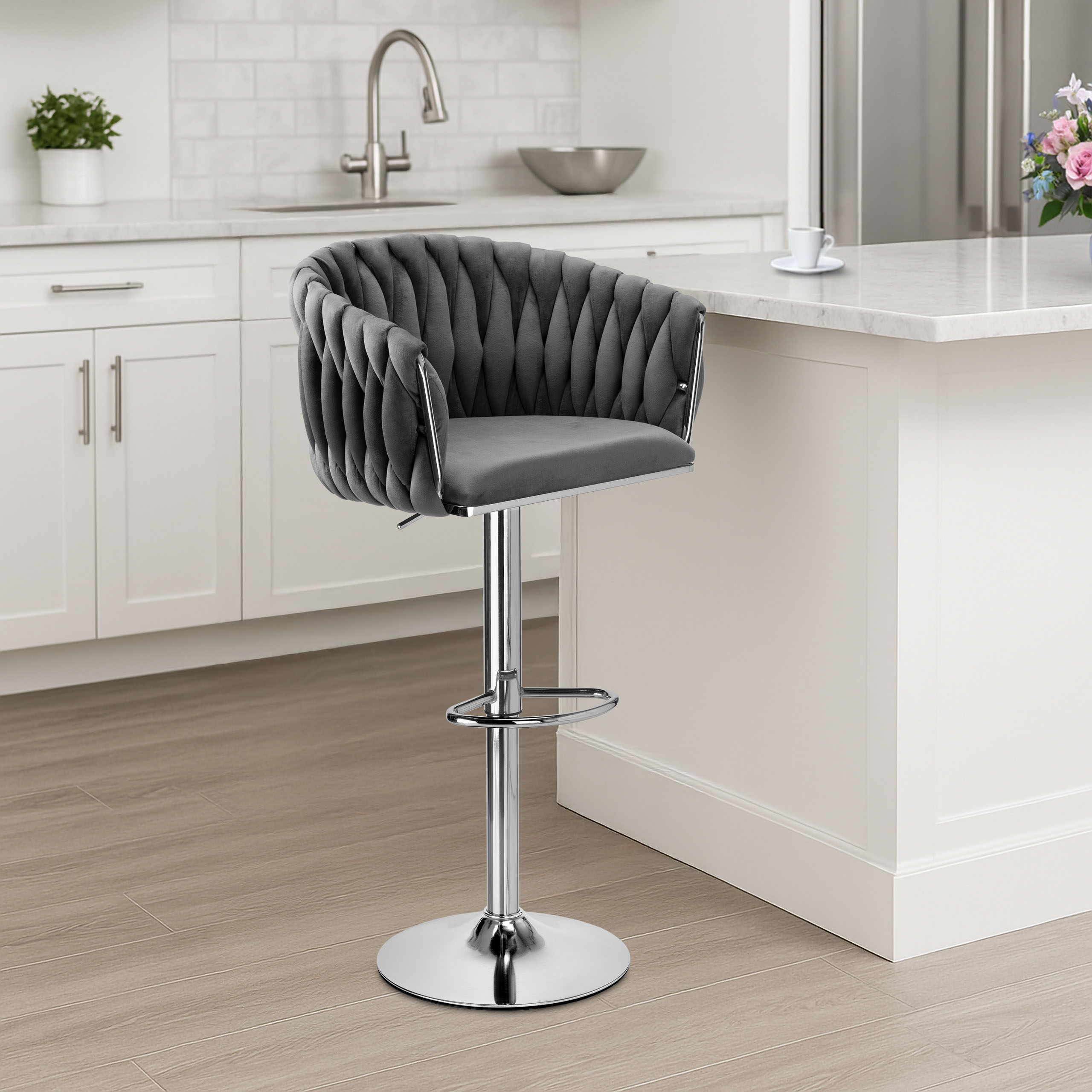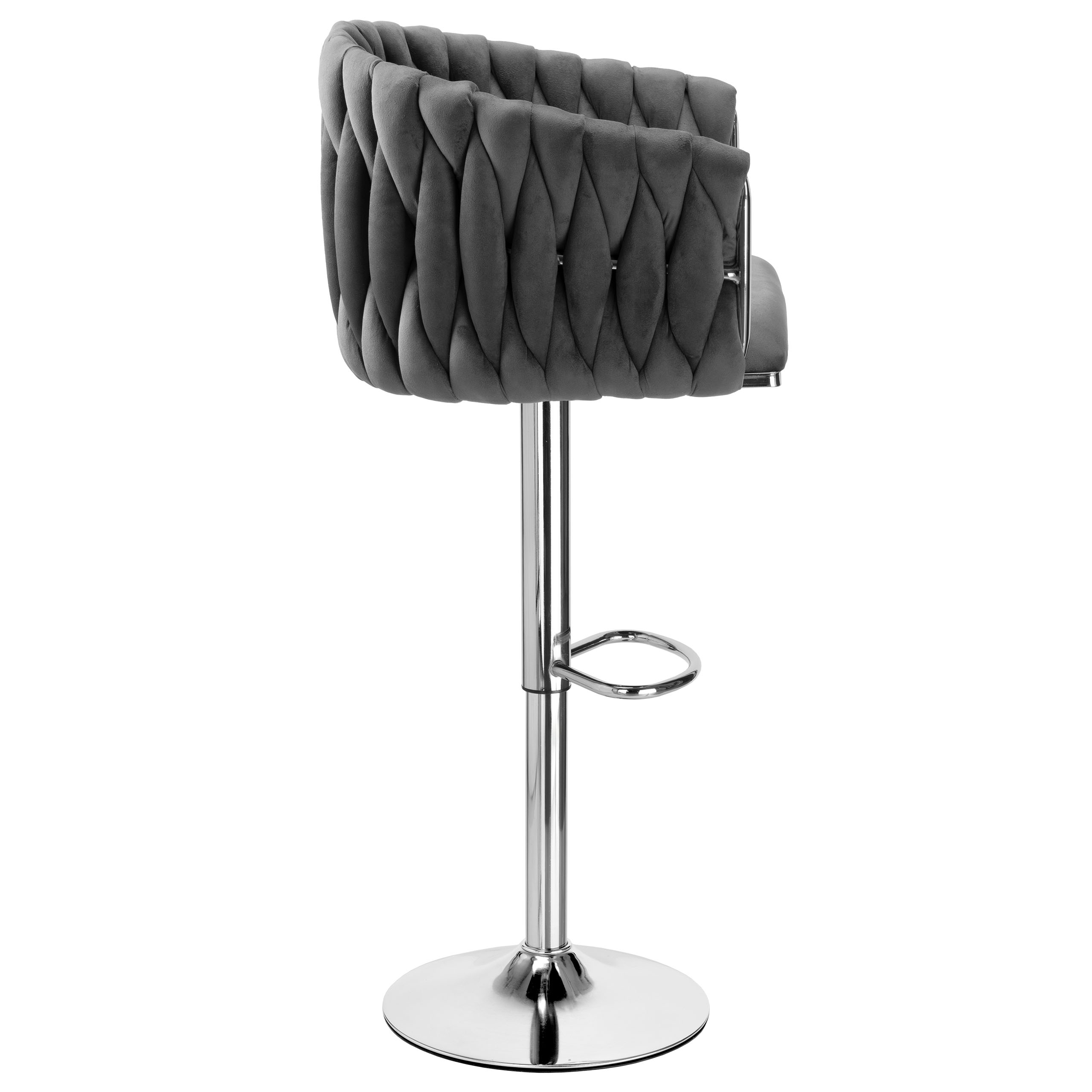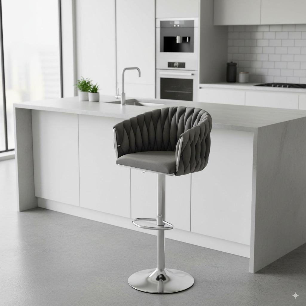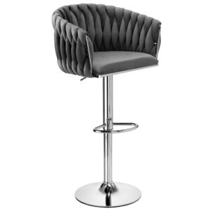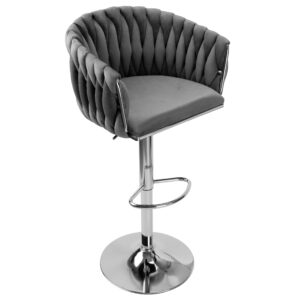 Stylowy hoker welurowy Cofton Chrom w kolorze grafitowym to połączenie elegancji, komfortu i funkcjonalności. Idealny do nowoczesnych kuchni, wysp kuchennych czy stylowych barów domowych. Dzięki miękkiej tapicerce z weluru oraz solidnej, chromowanej podstawie, zapewnia wygodę podczas siedzenia i dodaje wnętrzu luksusowego charakteru.