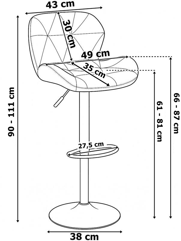Minimalna wysokość do siedziska: 61 cm