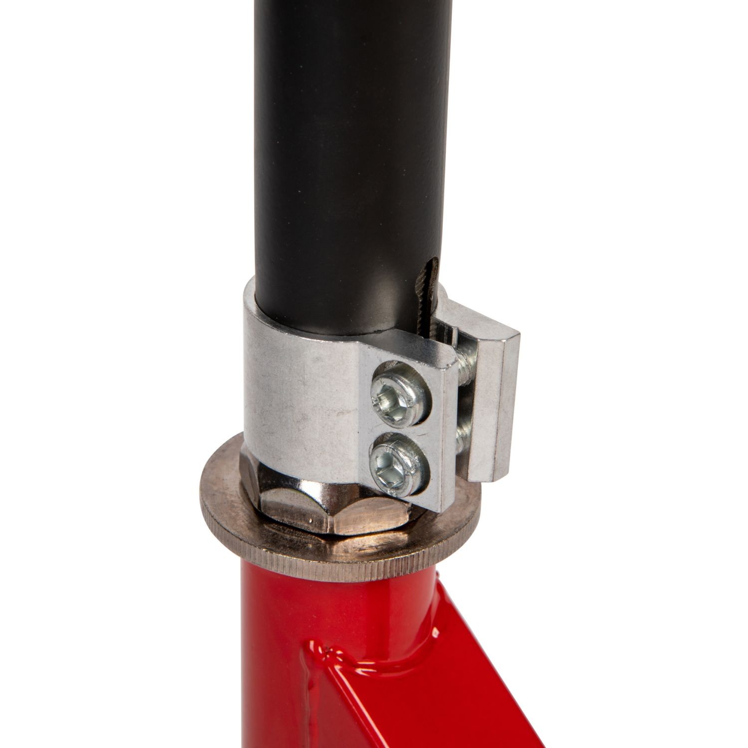 - Solidny zacisk regulacyjny – pozwala łatwo dopasować wysokość kierownicy (85,5-95,5 cm). Stabilna blokada utrzymuje ustawienie nawet przy intensywnym użytkowaniu, co przekłada się na bezpieczną i wygodną jazdę.