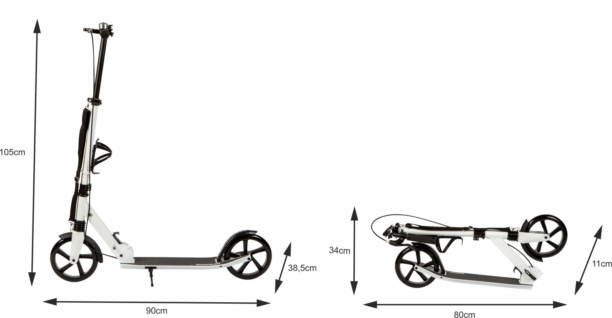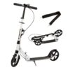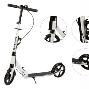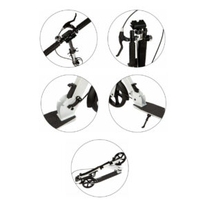 - Praktyczny system składania kierownicy – umożliwia szybkie złożenie hulajnogi do kompaktowych rozmiarów. Stabilne zawiasy i zabezpieczenia zwiększają bezpieczeństwo.