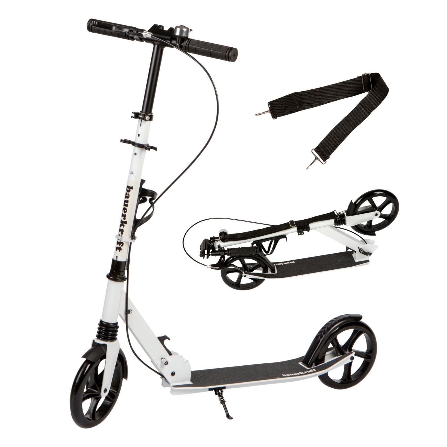 - Praktyczna nóżka pozwala bezpiecznie odstawić hulajnogę w dowolnym miejscu bez ryzyka przewrócenia.