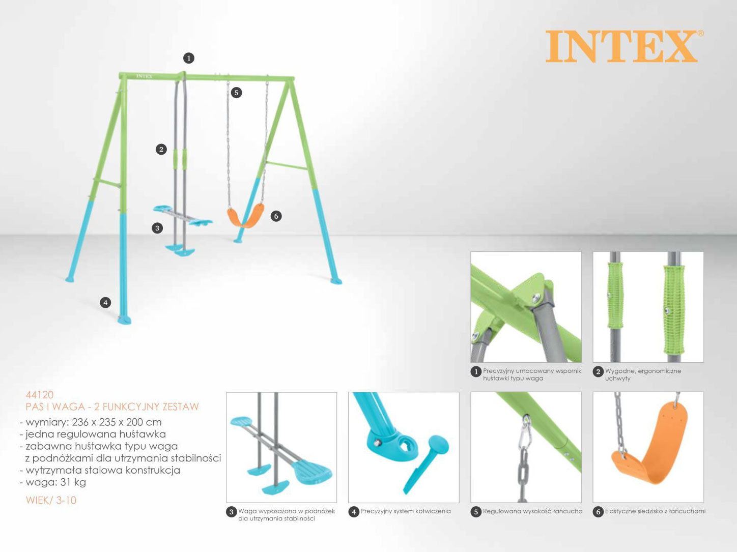 Huśtawka ogrodowa podwójna plac zabaw dla dzieci szybowiec INTEX 44120