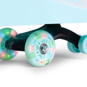 Jeździk jest wyposażony w koła LED, które zaczynają świecić, gdy są wprawione w ruch. Dzięki temu wieczorna zabawa staje się jeszcze bardziej ekscytująca i pełna radości. Świecące koła nie tylko przyciągają uwagę, ale także zwiększają widoczność dziecka po zmroku, co przekłada się na większe bezpieczeństwo podczas wieczornych spacerów.
