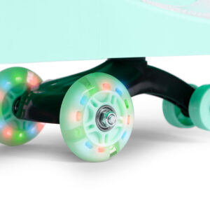 Jeździk jest wyposażony w koła LED, które zaczynają świecić, gdy są wprawione w ruch. Dzięki temu, wieczorna zabawa staje się jeszcze bardziej ekscytująca i pełna radości. Świecące koła nie tylko przyciągają uwagę, ale także zwiększają widoczność dziecka po zmroku, co przekłada się na większe bezpieczeństwo podczas wieczornych spacerów.