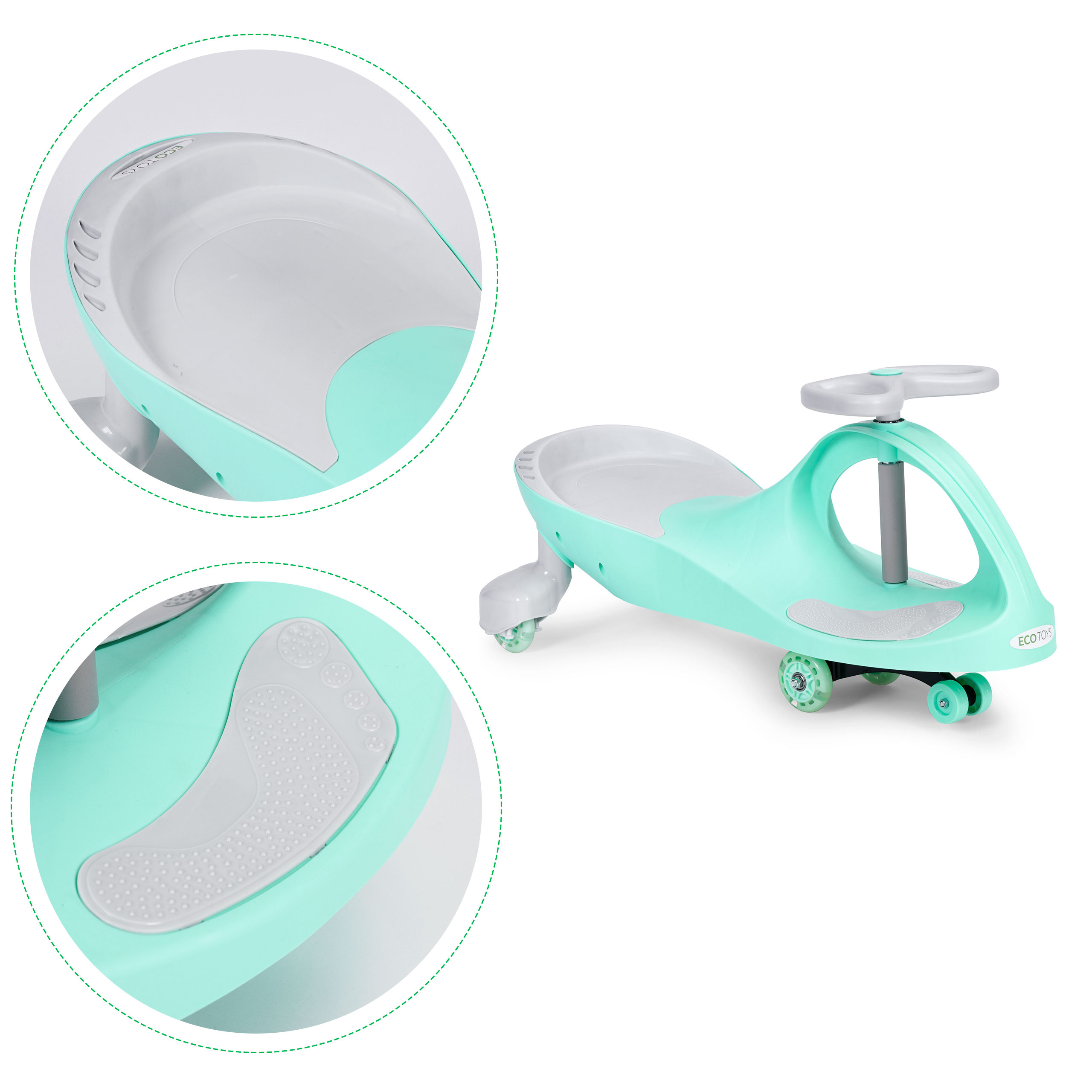 Jeździk marki ECOTOYS to świetna zabawka, nawet dla najmniejszych dzieci. Maluch wykorzysta swoją energię i wprawi w ruch swój pojazd bez konieczności używania nóg. Zastosowanie specjalnego systemu jazdy sprawia, że dziecko jest w stanie poruszać się przez wykonywanie naprzemiennie ruchów kierownicą, w lewo-prawo. Taka zabawa pozytywie wpłynie na rozwój motoryczny oraz zmysł równowagi Twojego dziecka, a dodatkowo zapewni świetną zabawę na świeżym powietrzu.