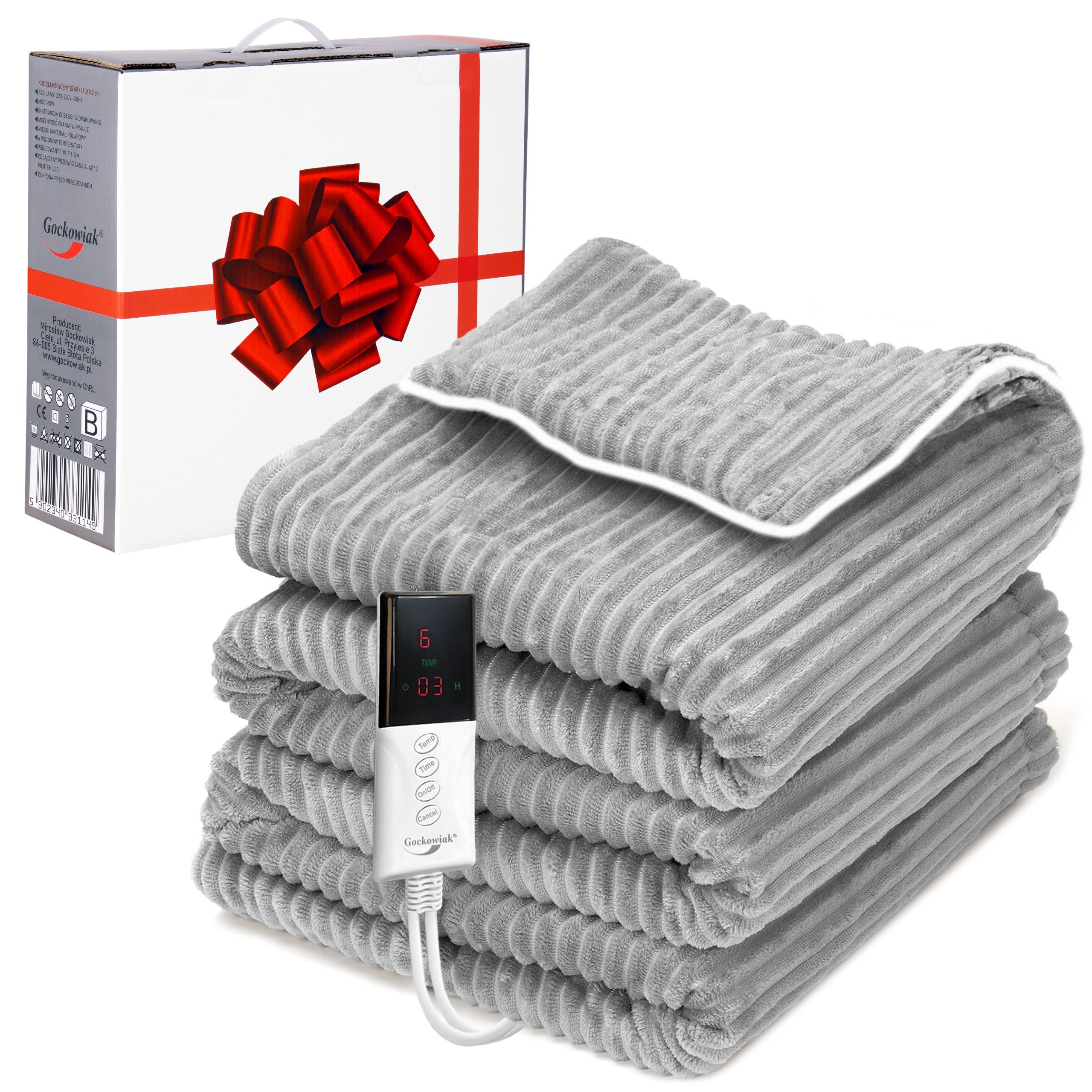 Koc elektryczny 160×180 cm ANGER szary