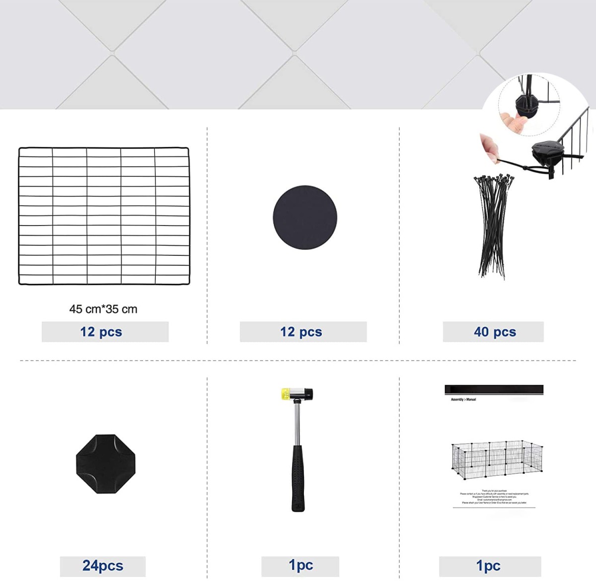 Produkt nie jest przeznaczony do długotrwałego użytku na zewnątrz. Nie przechowuj zagrody na stałe na dworze, ponieważ może to wpłynąć na jej trwałość. - Jak prawidłowo zamontować plastikowe łączniki?