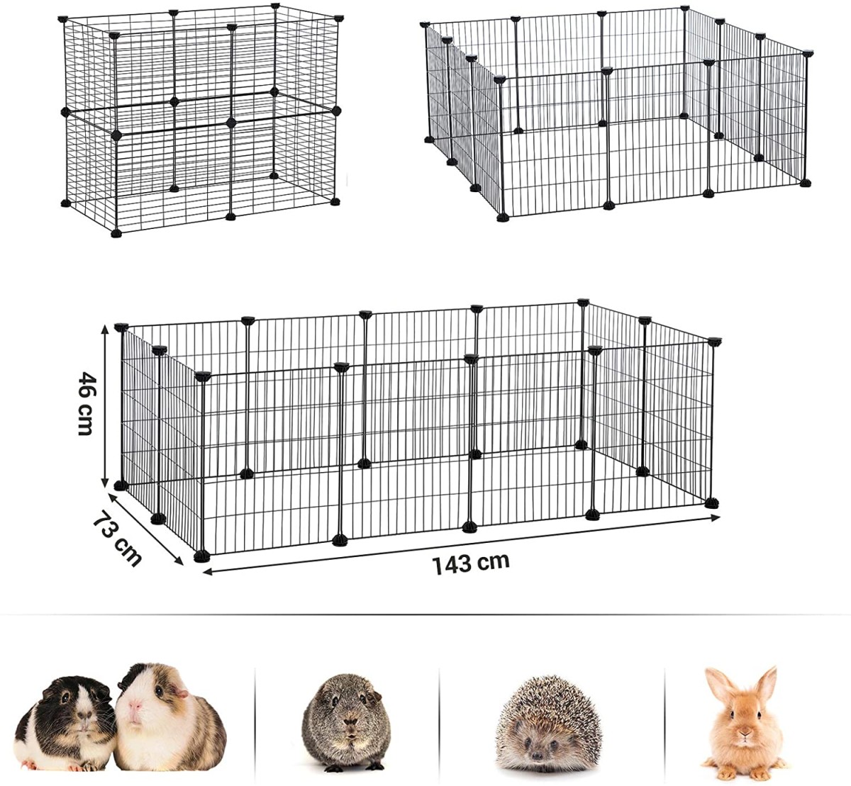 Modułowy kojec to doskonałe rozwiązanie dla właścicieli małych zwierzaków, którzy chcą zapewnić im bezpieczną, wydzieloną przestrzeń w domu. Zagroda świetnie sprawdzi się dla chomików, świnek morskich, jeży, królików miniaturek, a także innych niewielkich gryzoni. Szczeliny w metalowych kratkach mają tylko 2,5 cm szerokości, co uniemożliwia zwierzątkom przeciskanie się przez nie – to gwarancja bezpieczeństwa. Metalowe panele kojca zapewniają dobrą cyrkulację powietrza i umożliwiają ciągły kontakt z pupilem. Stwórz kącik, który stanie się ulubionym miejscem Twojego pupila.