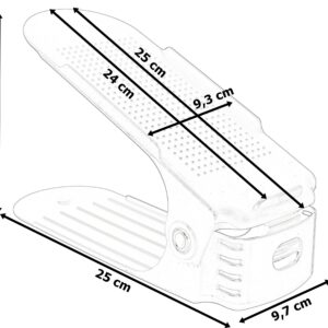 Uchwyt pasuje do wszystkich rodzajów obuwia – adidasów, szpilek itd. Zajmując niewiele miejsca, znacznie zwiększa przestrzeń do przechowywania, dzięki układaniu butów jeden na drugi. Świetnie nadaje się do organizowania obuwia całej rodziny.