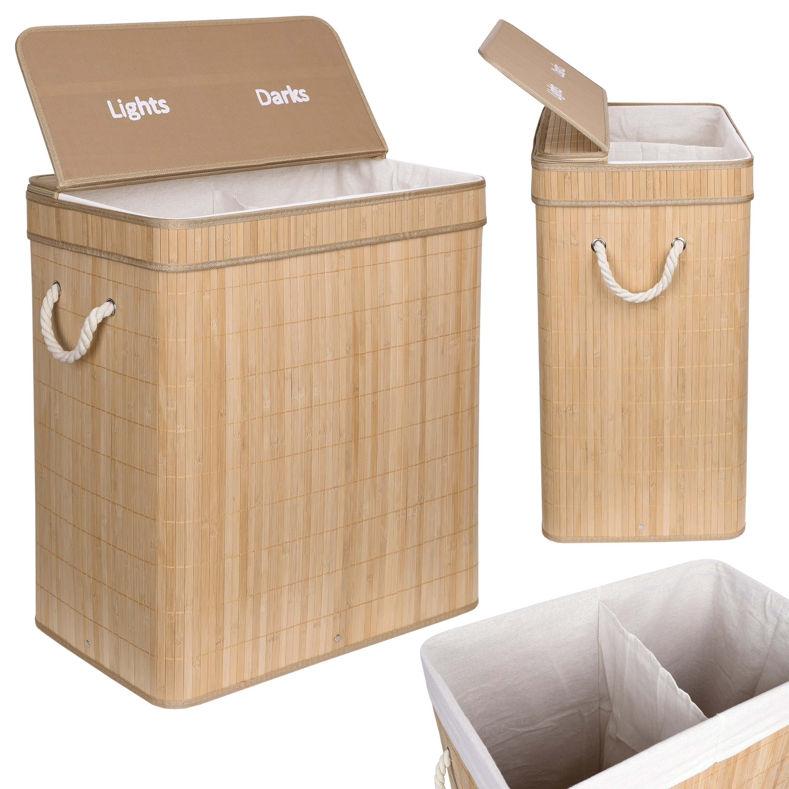 Kosz bambusowy pojemnik na pranie Soren 2 komory natural
