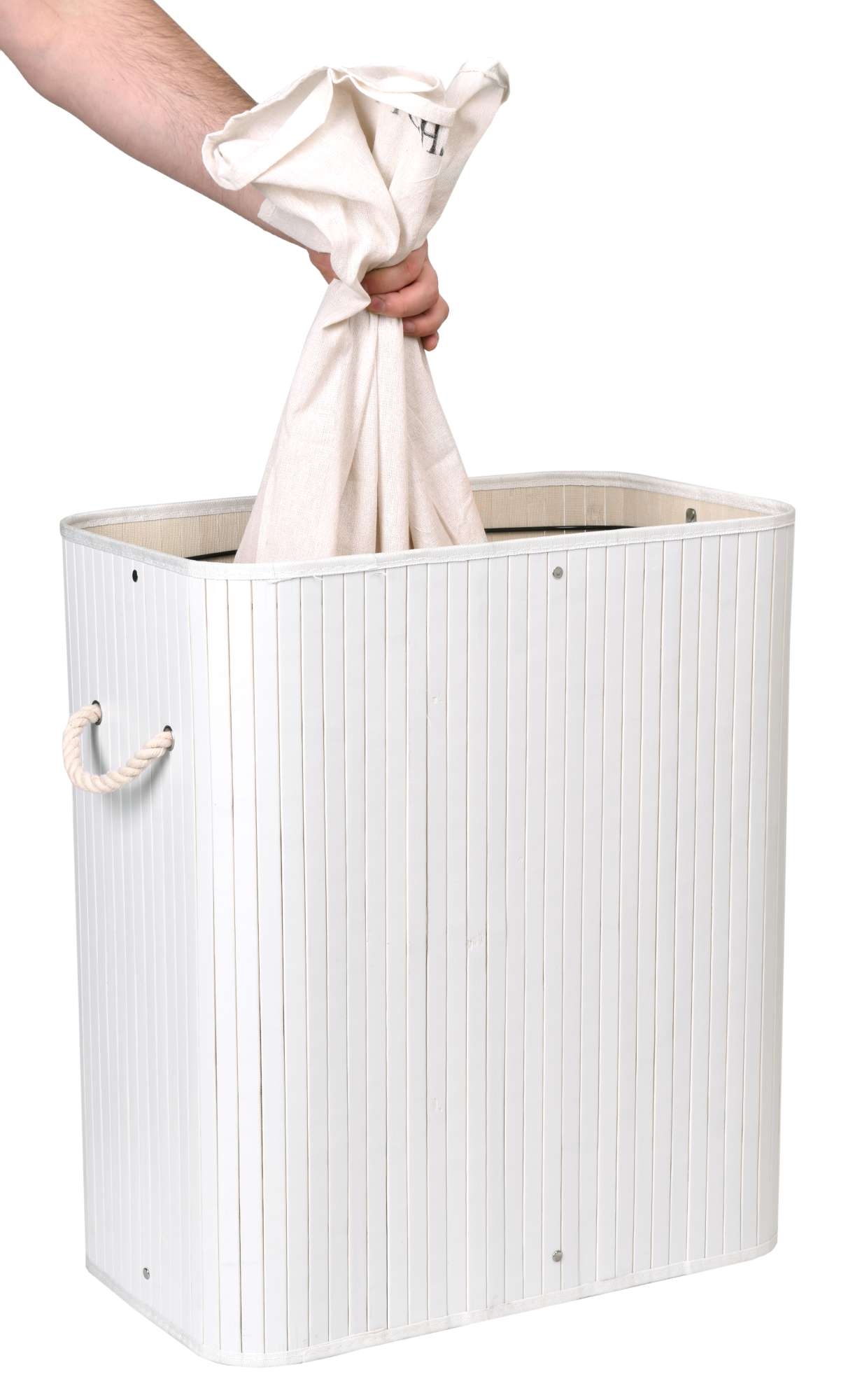 Najpiękniejszy i najtrwalszy, stylowy pojemnik na pranie o pojemności 100 litrów. Wykonany z naturalnego bambusa. Wnętrze wypełnia lniana torba z praktyczną przegrodą na jasne i ciemne pranie. Prosta, budowa, sztywna konstrukcja. Ukrywa nieprzyjemne zapachy. Umożliwia wygodne szybkie i pranie.