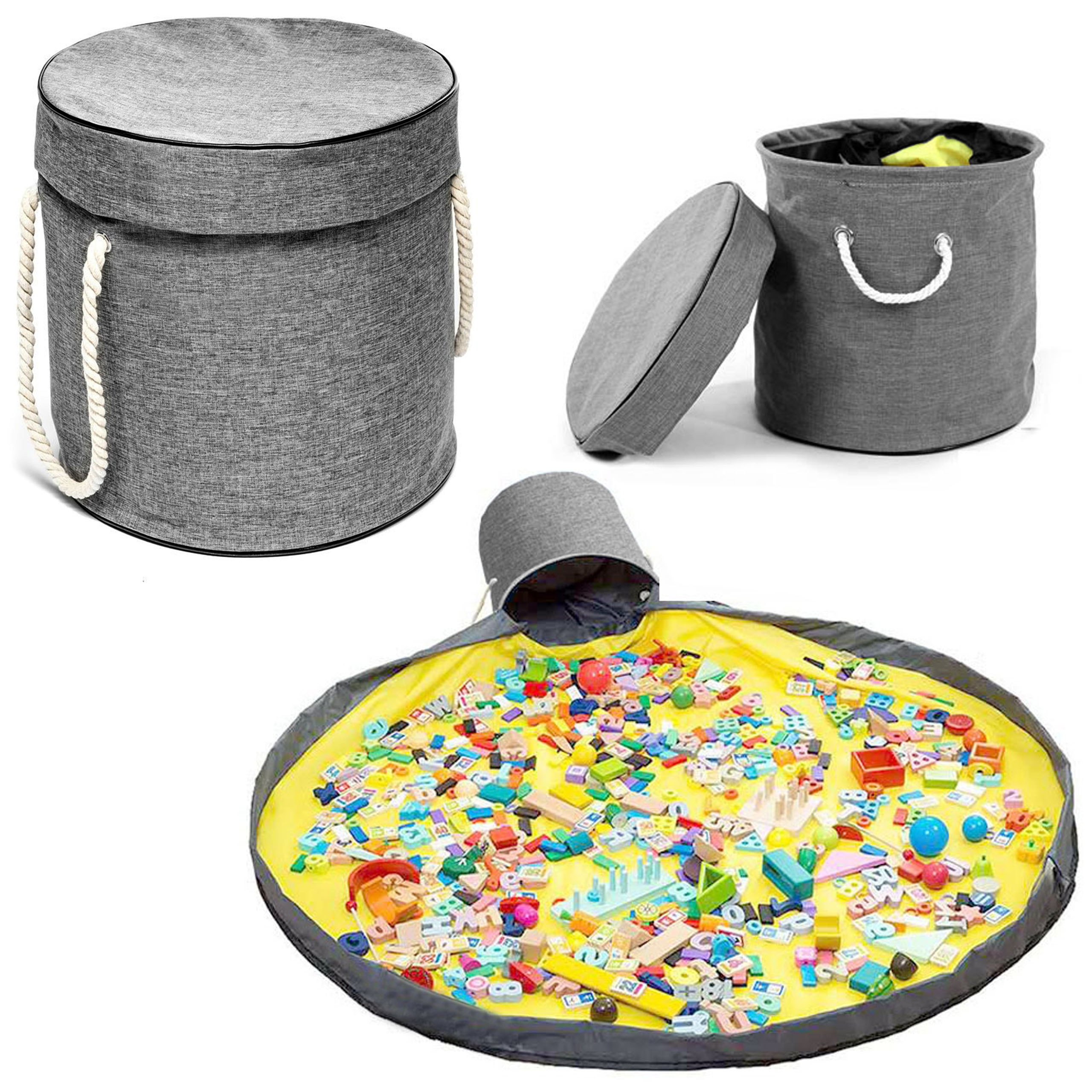 Kosz na zabawki DIXI szary z matą na klocki zabawki