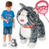 interaktywny kotek chodzi na smyczy, a gdy się go pogłaszcze – miauczy i się