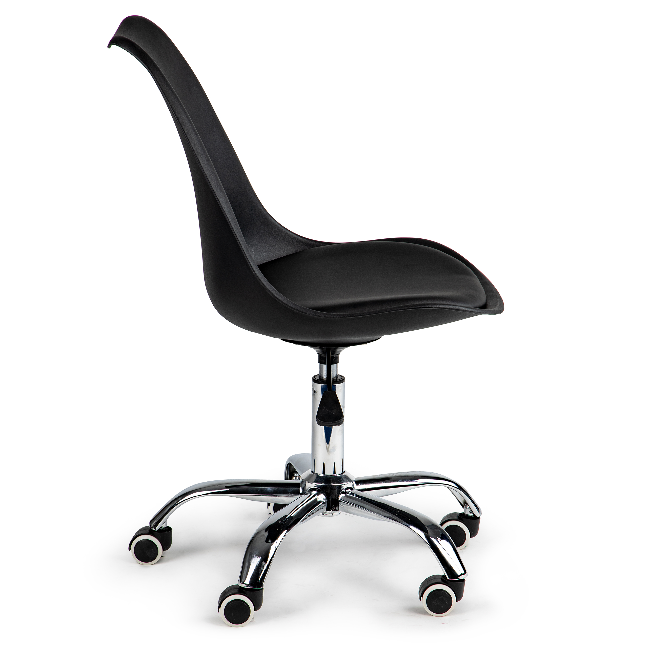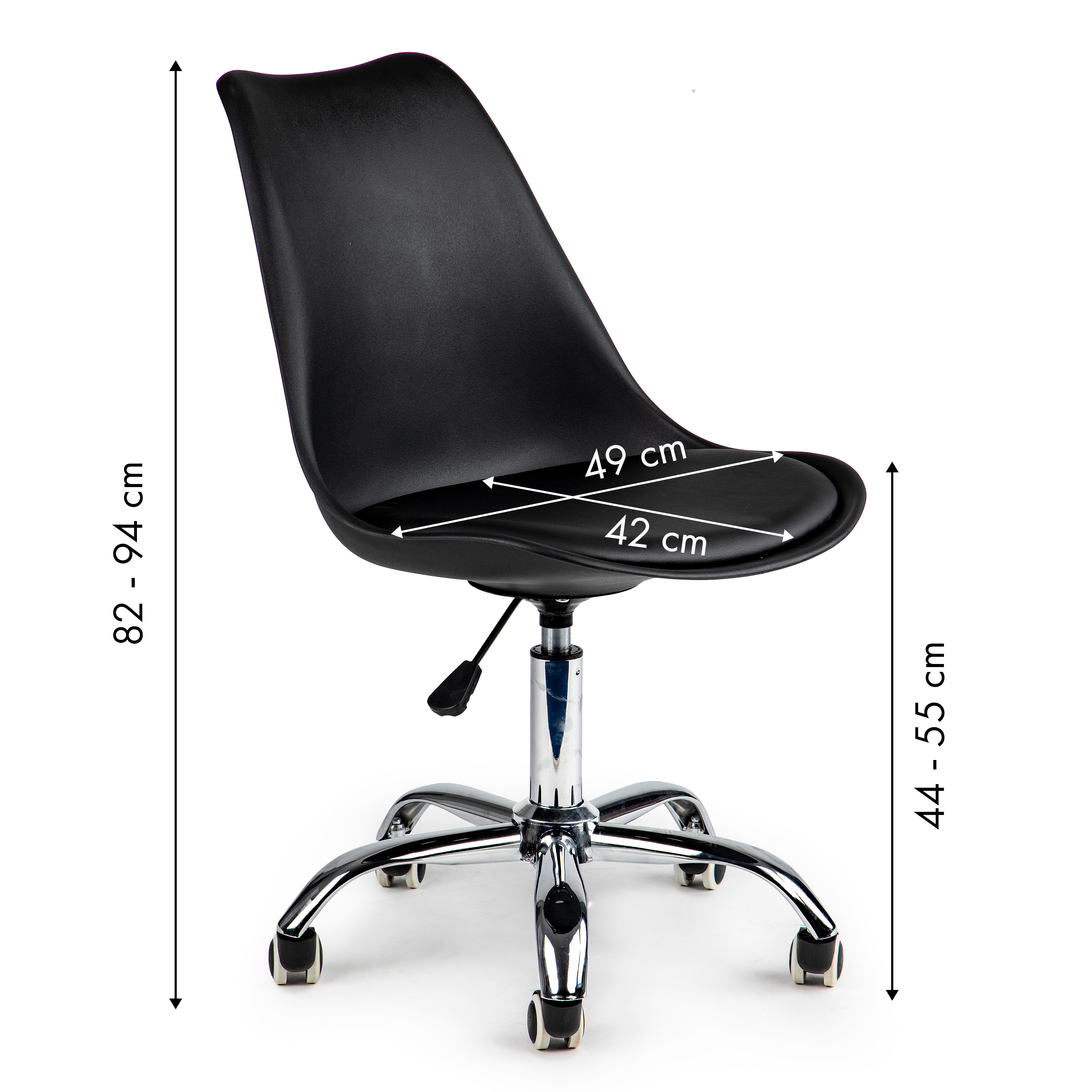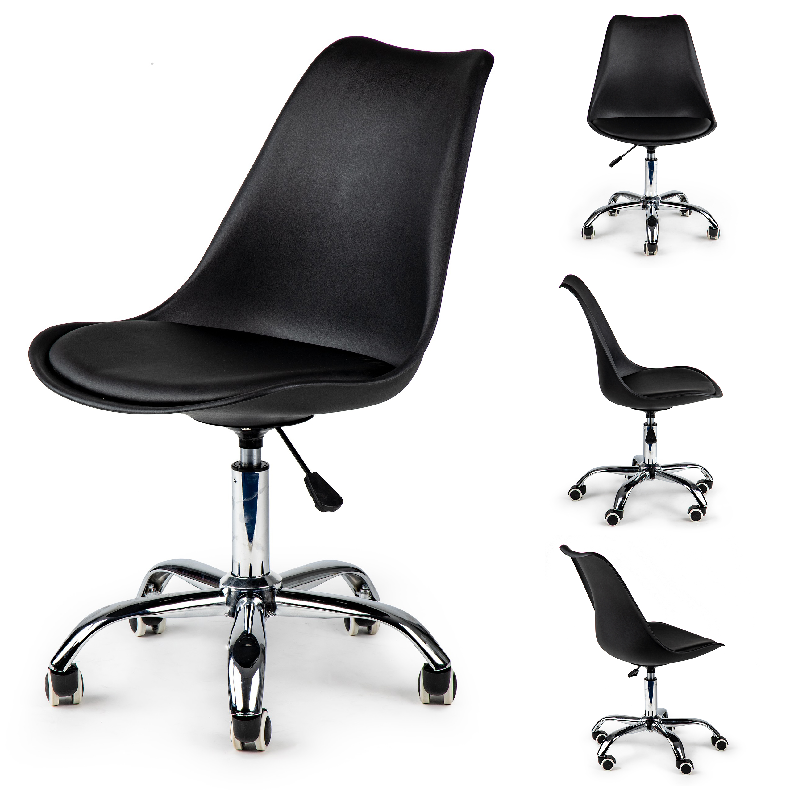 Krzesło obrotowe biurowe z podnośnikiem poduszką chromowane nogi czarne ModernHome