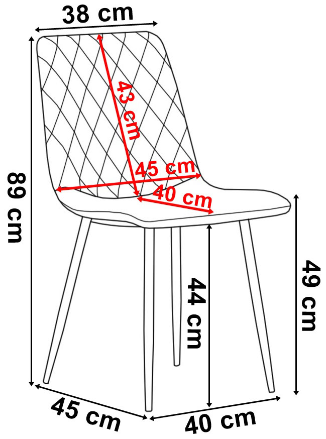 Krzesło Dexter to wyjątkowe krzesło, które doda blasku każdemu pomieszczeniu. Ma piękne oparcie z pikowanym, przykuwającym uwagę wzorem w karo. Wyjątkowe połączenie przyjemnego, aksamitnego materiału welurowego z metalowymi czarnymi nogami sprawi, że nikt nie przejdzie obok niego obojętnie. Krzesło bardzo wygodne, stabilne, z profilowanym oparciem. Odśwież swoje pomieszczenie już teraz! Dexter to praktyczne i komfortowe krzesło. Świetnie nada się do nowoczesnych salonów, kuchni, restauracji, barów, ekskluzywnych sklepów, salonów kosmetycznych/fryzjerskich, eleganckich biur, stoisk na targach, punktów informacyjnych.
