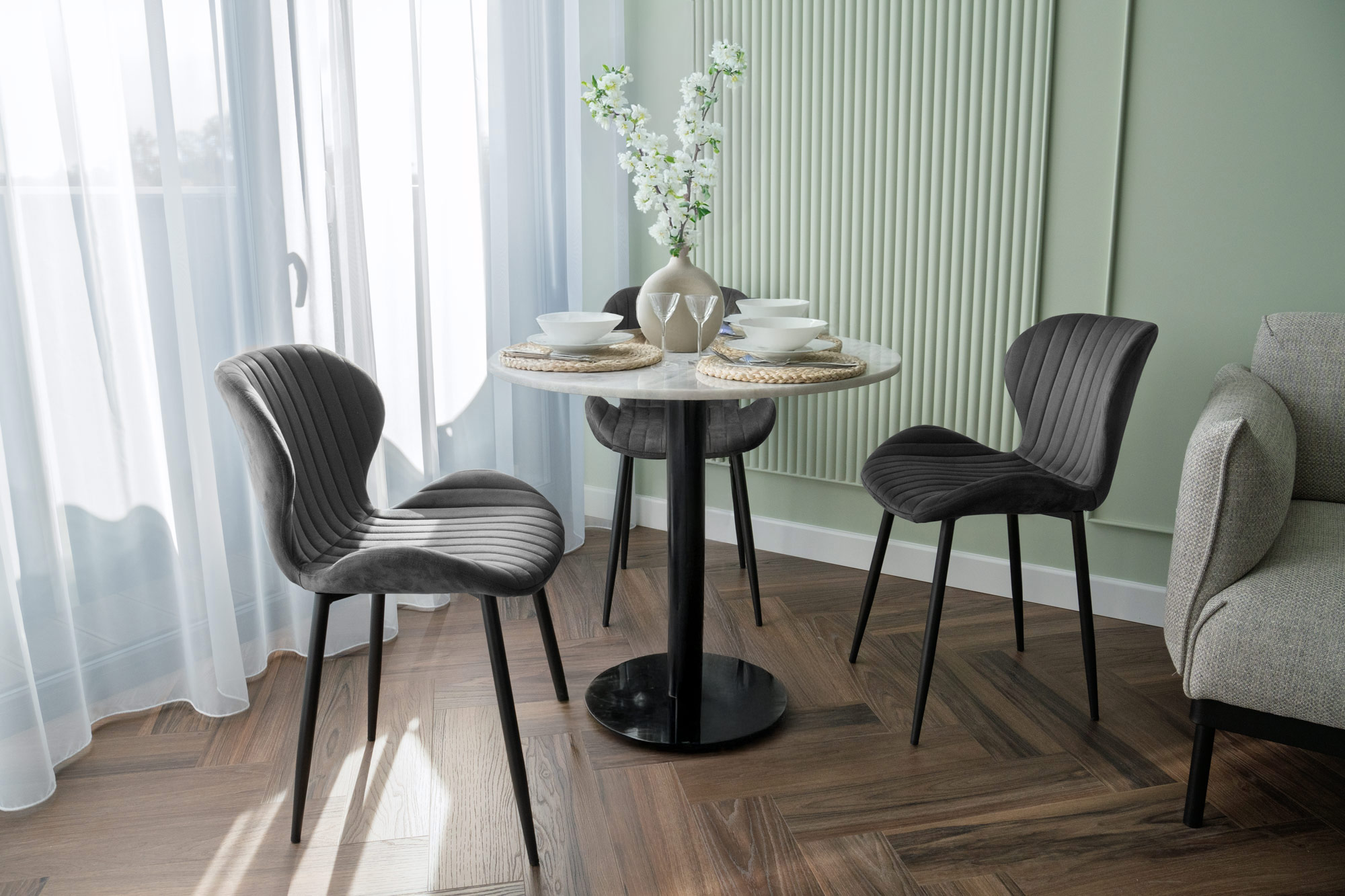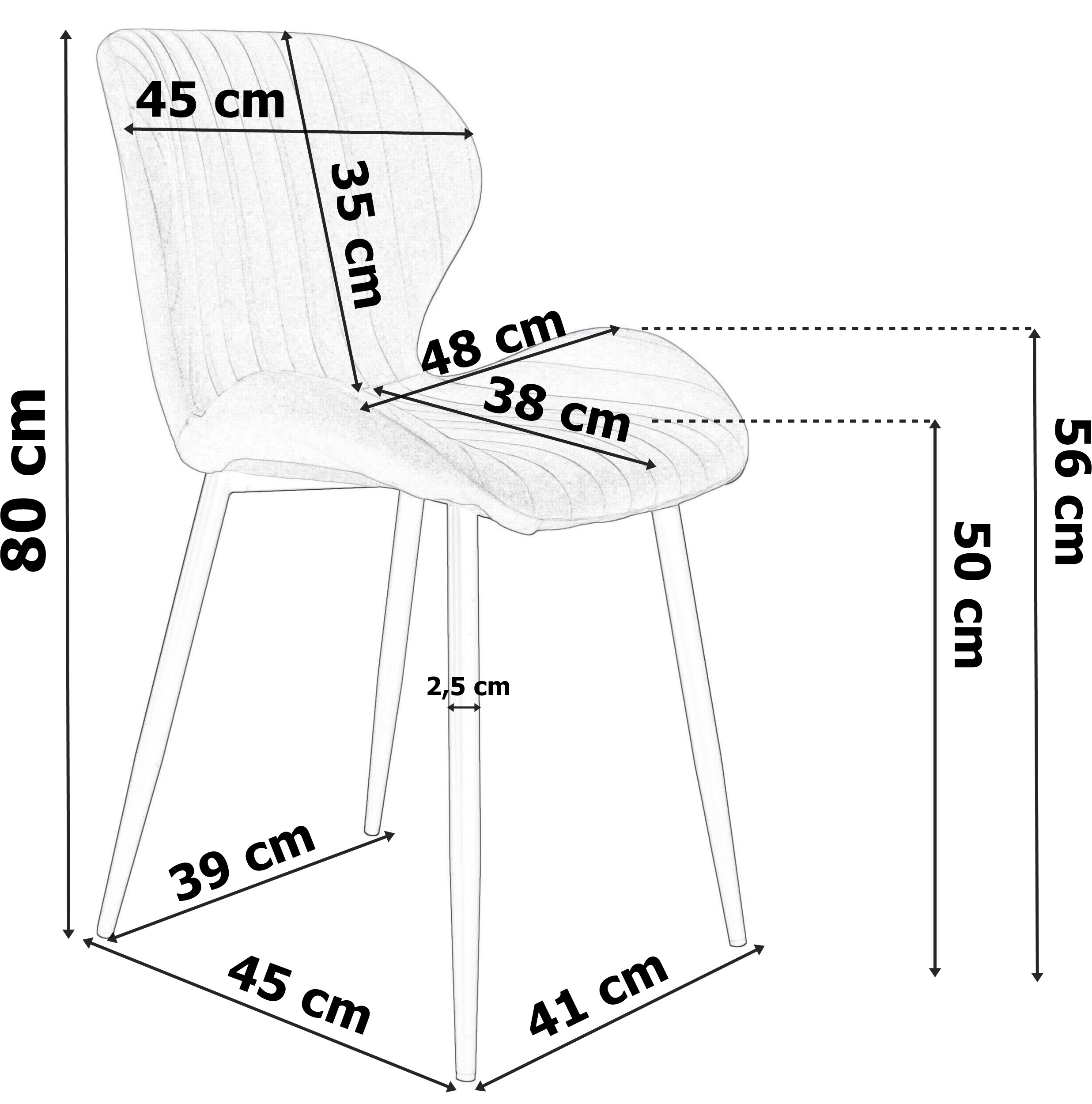 Wyjątkowe połączenie przyjemnego, aksamitnego materiału welurowego z metalowymi czarnymi nogami. Krzesło bardzo wygodne, stabilne, z profilowanym oparciem. Nie czekaj! Odśwież swoje pomieszczenie już teraz!