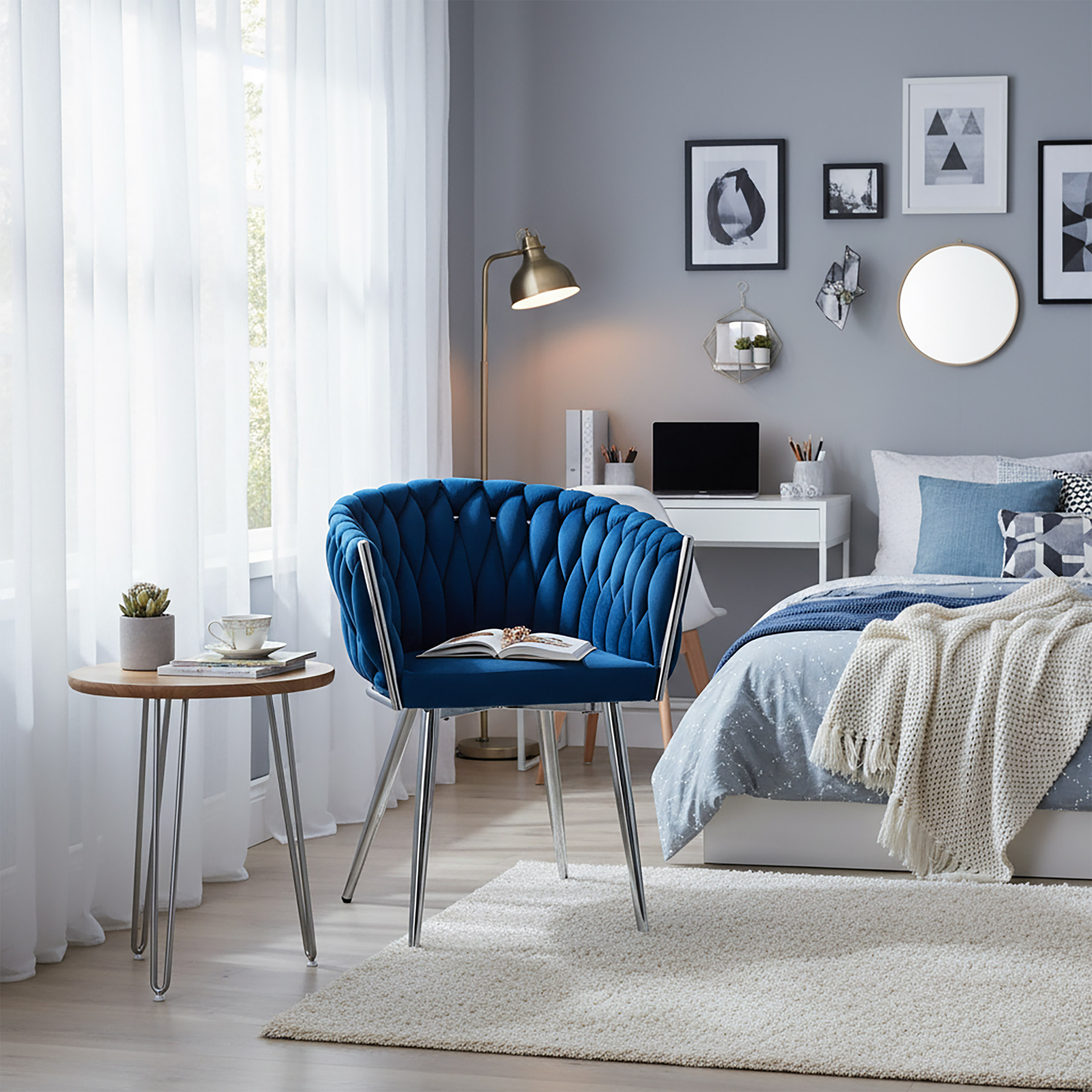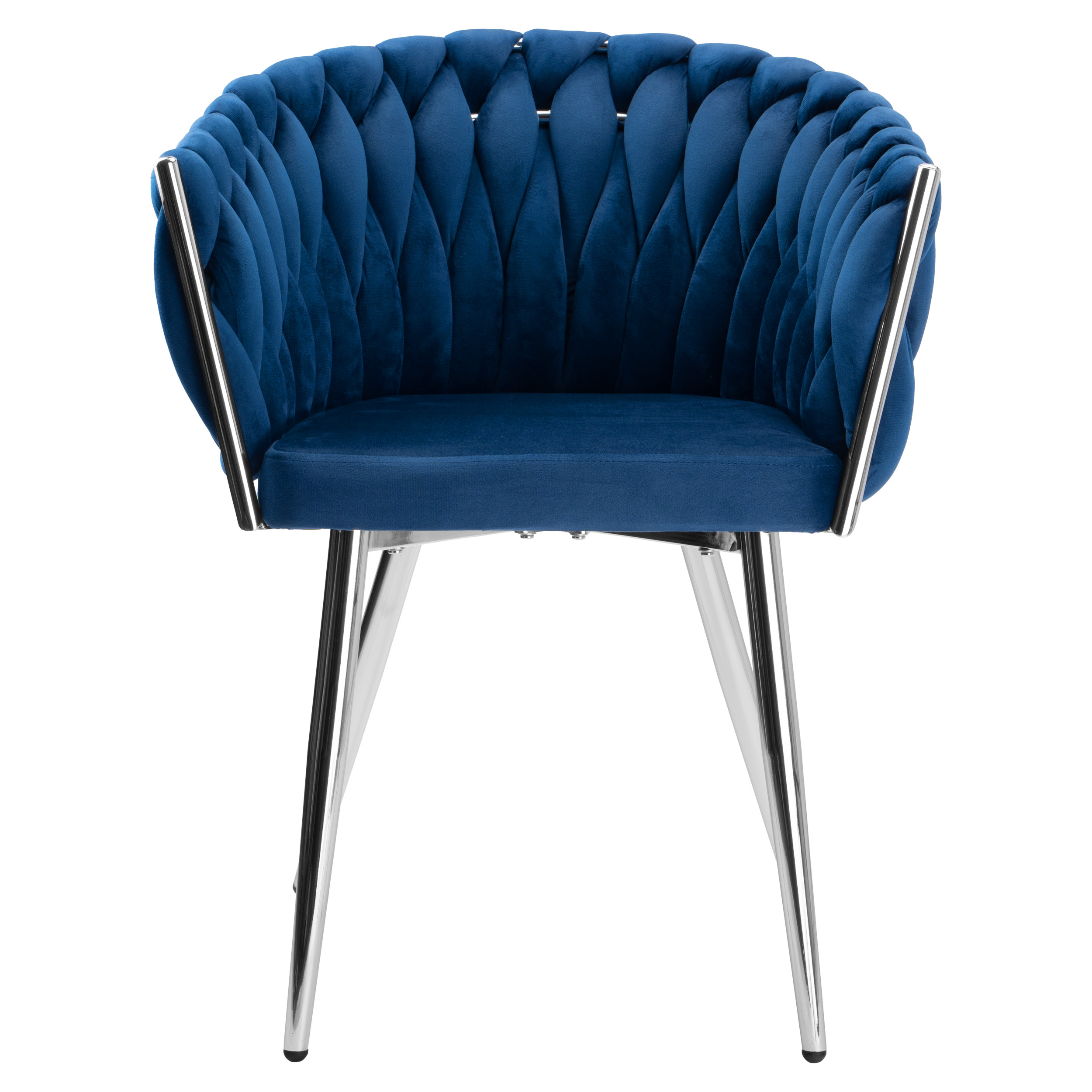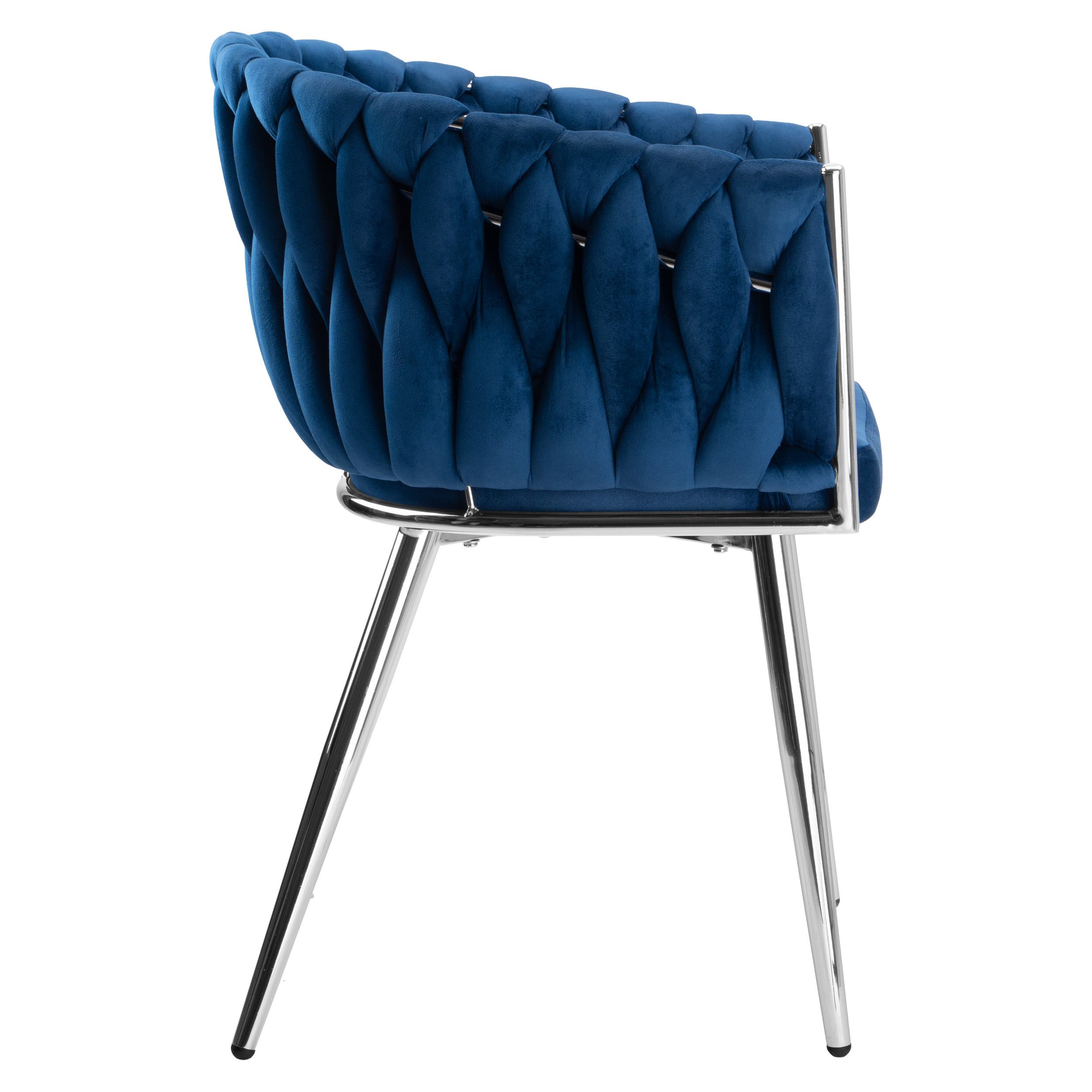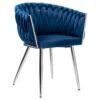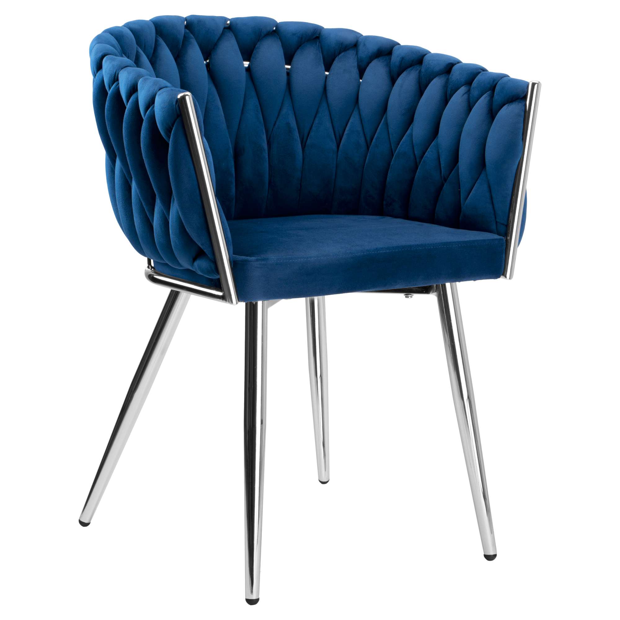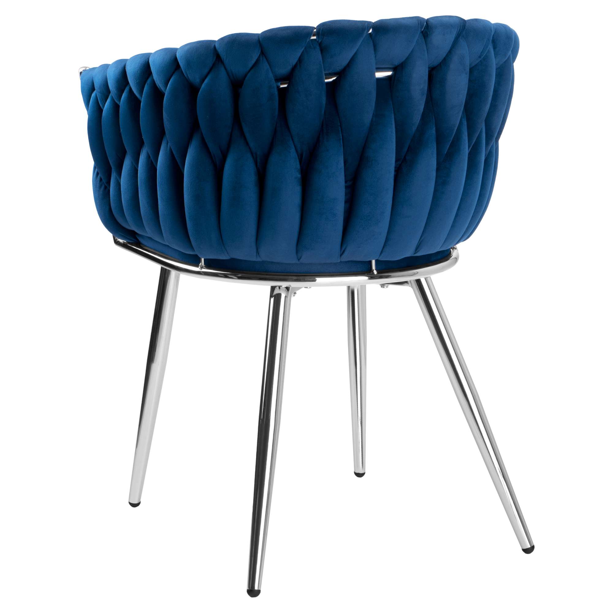 Krzesło welurowe plecione COFTON chrom VELVET granatowy