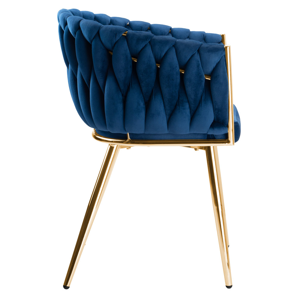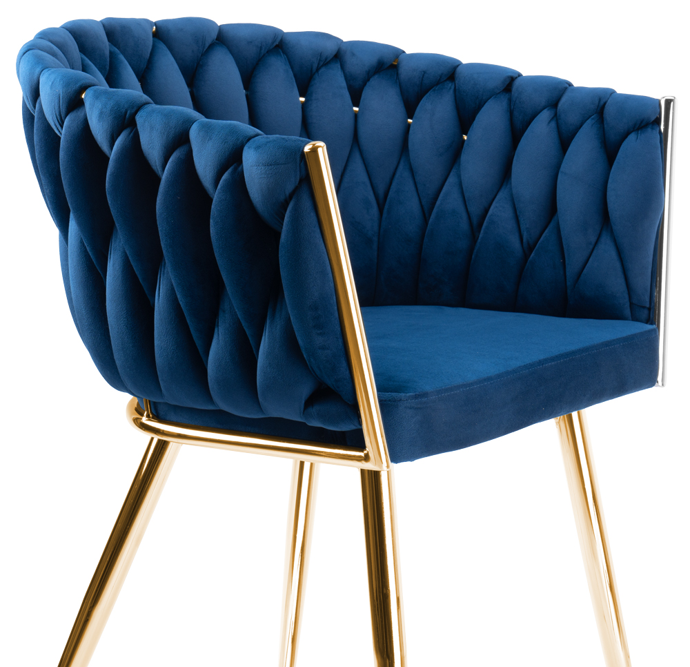 Krzesło welurowe plecione COFTON gold VELVET granatowy