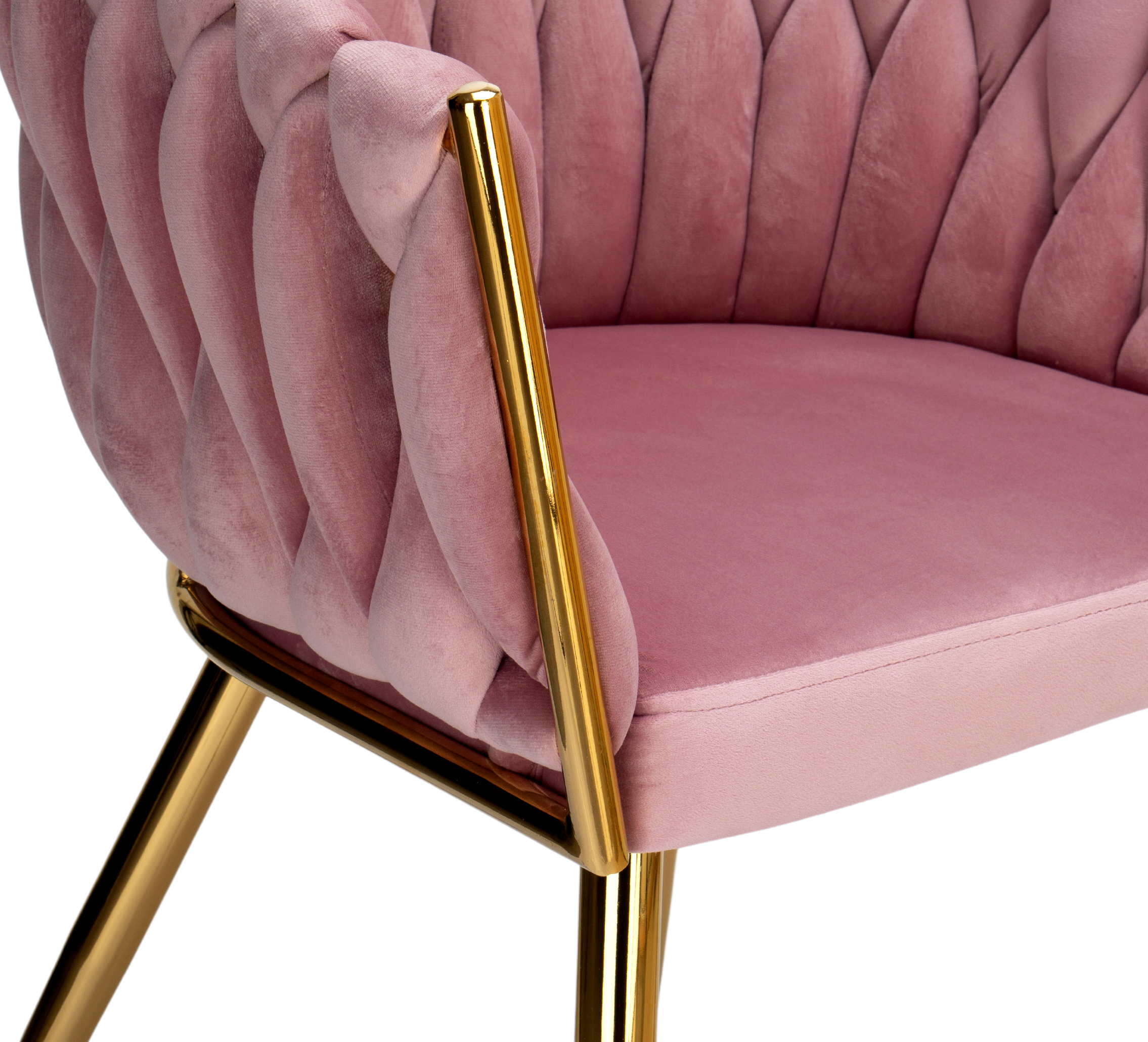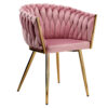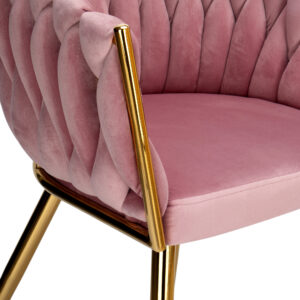 Krzesło welurowe plecione COFTON gold VELVET różowy