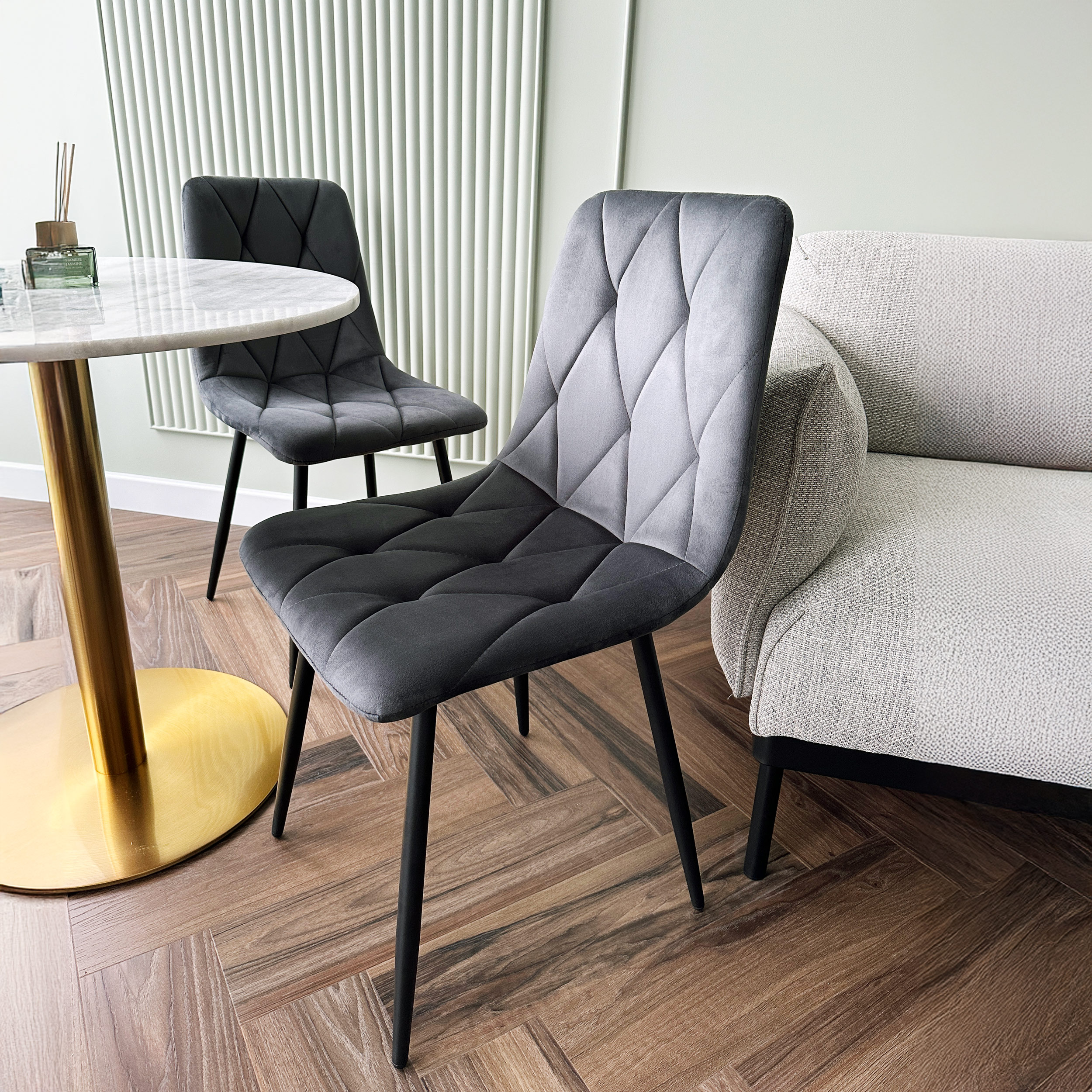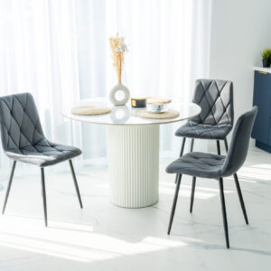 Krzesło Madison to wyjątkowe krzesło zaprojektowane pod kątem stylu glamour oraz loft. Tapicerowane miękką aksamitną tkaniną z delikatnymi przeszyciami tworzącymi przyciągający wzrok wzór. Niezwykle wygodne o ergonomicznym kształcie.