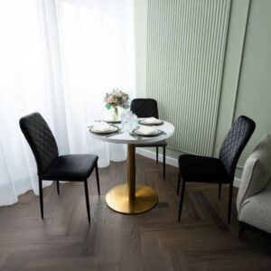Krzesło Maverik to połączenie nowoczesnego designu z wyjątkowym komfortem. Dzięki aksamitnej tkaninie welurowej i eleganckim, matowym metalowym nogom, wnosi do każdego wnętrza nutę luksusu. Idealne zarówno do kuchni, jadalni, salonu, jak i biura. Krzesło Maverik zapewnia nie tylko stylowy wygląd, ale również wygodę użytkowania, dzięki czemu każda chwila spędzona na nim staje się przyjemnością. Kupując krzesło Maverik, zyskujesz nie tylko estetykę, ale także funkcjonalność, co sprawia, że doskonale wpisuje się w potrzeby nowoczesnych wnętrz.