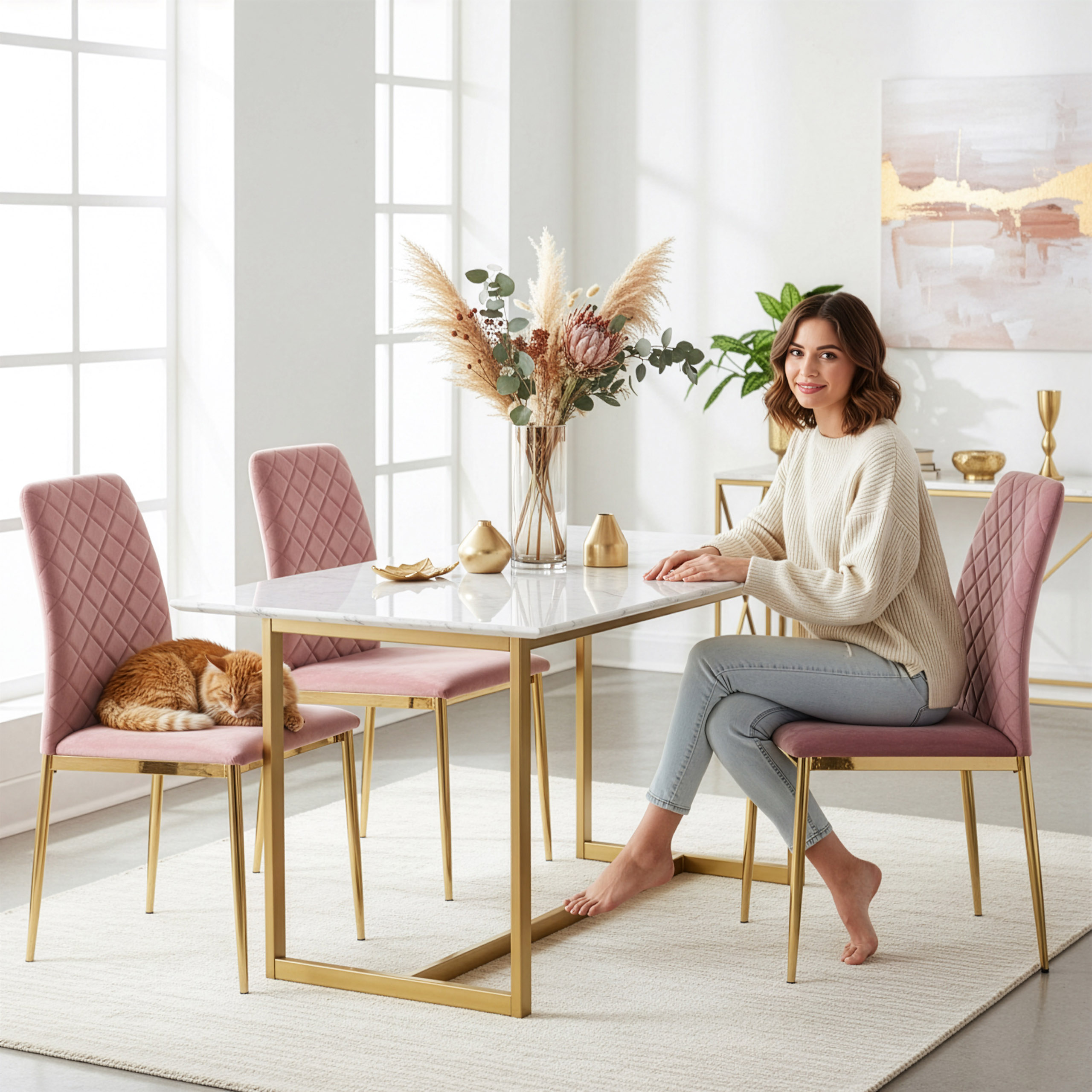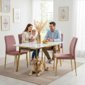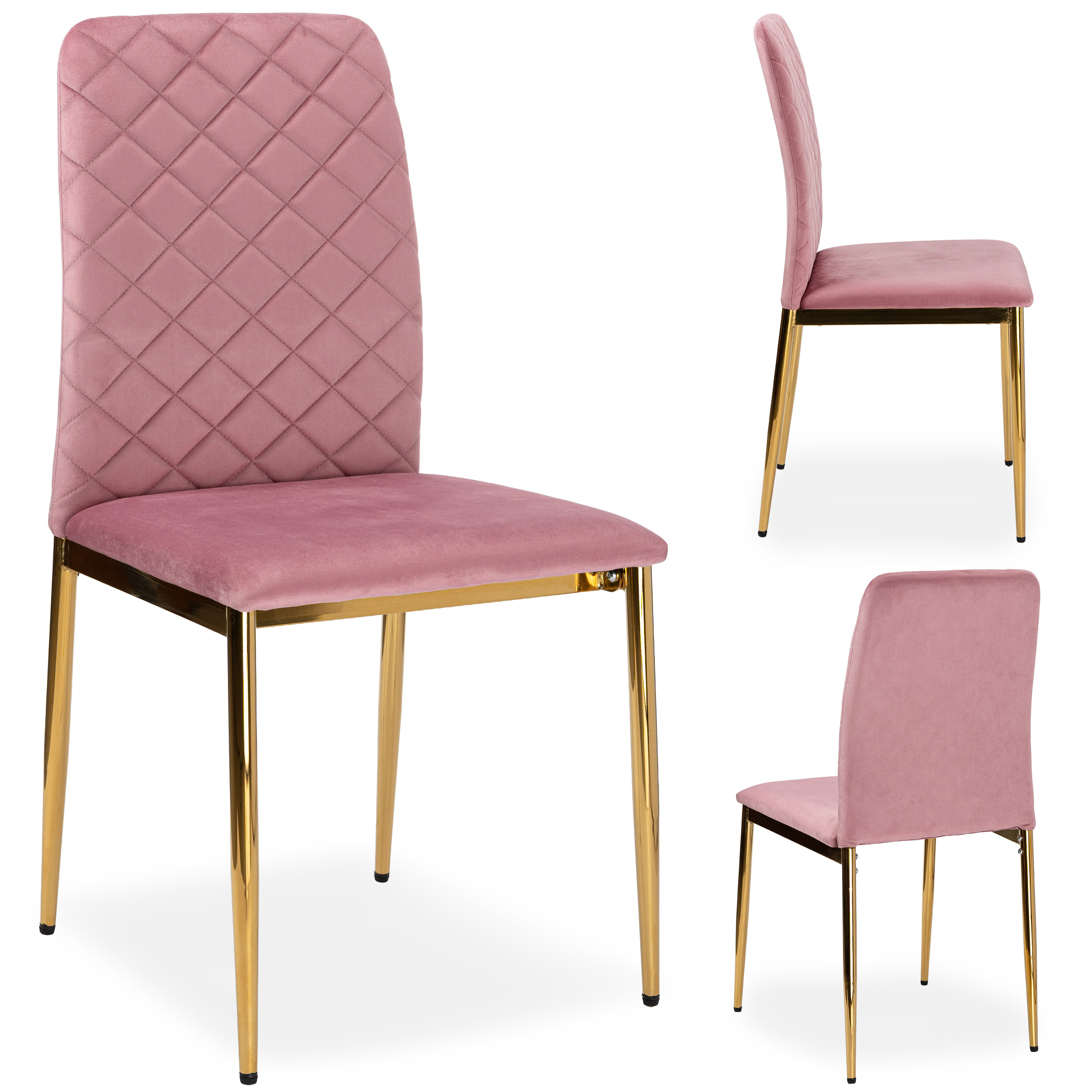 Krzesło welurowe tapicerowane MAVERIK Velvet gold różowe
