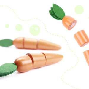 Dodatkowo realistycznie wyglądające marchewki i rzodkiewki, które