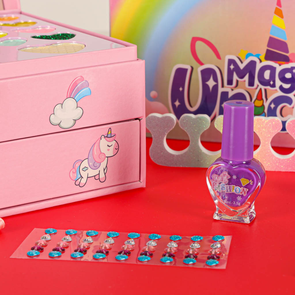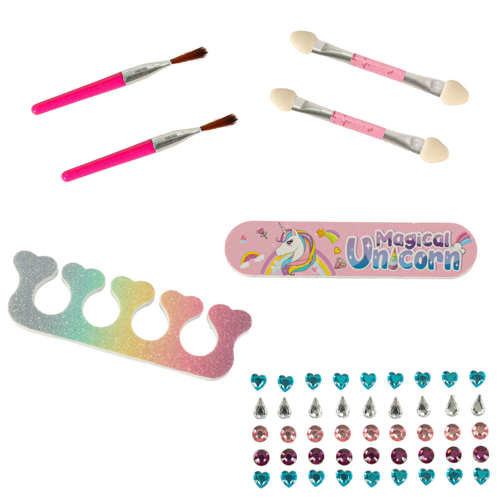 z jednorożcem kryje w sobie różnorodne kosmetyki do