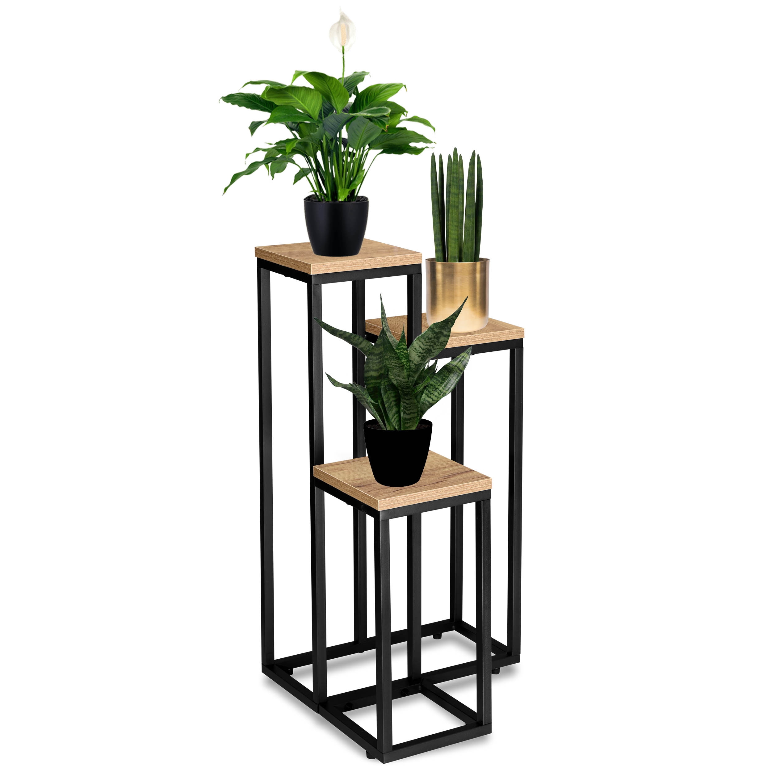 Munir to stabilny i solidny kwietnik wykonany z profili stalowych, pomalowanych proszkowo na matowy czarny kolor oraz z płyty laminowanej w odcieniu dębu CRAFT. Jego prosty, a zarazem atrakcyjny design, idealnie wpasuje się w każde nowoczesne wnętrze urządzone w stylu loftowym, klasycznym lub industrialnym. Kwietnik posiada wytrzymałą stalową konstrukcję oraz stabilne półki, które bez trudu udźwigną nawet ciężkie donice z roślinami i dekoracjami. Dodatkowo wyposażony jest w ochronne podkładki z możliwością regulacji poziomu. Wszystkie elementy zostały wykonane z najwyższej jakości materiałów, dbając o najdrobniejsze detale. Munir to idealna propozycja dla miłośników kwiatów, którzy chcą podkreślić ich piękno i wyjątkowe walory. Kwietnik ten z pewnością przyciągnie uwagę, dzięki swojej solidnej konstrukcji i ciekawemu wzornictwu, które robi wrażenie na każdym z gości.