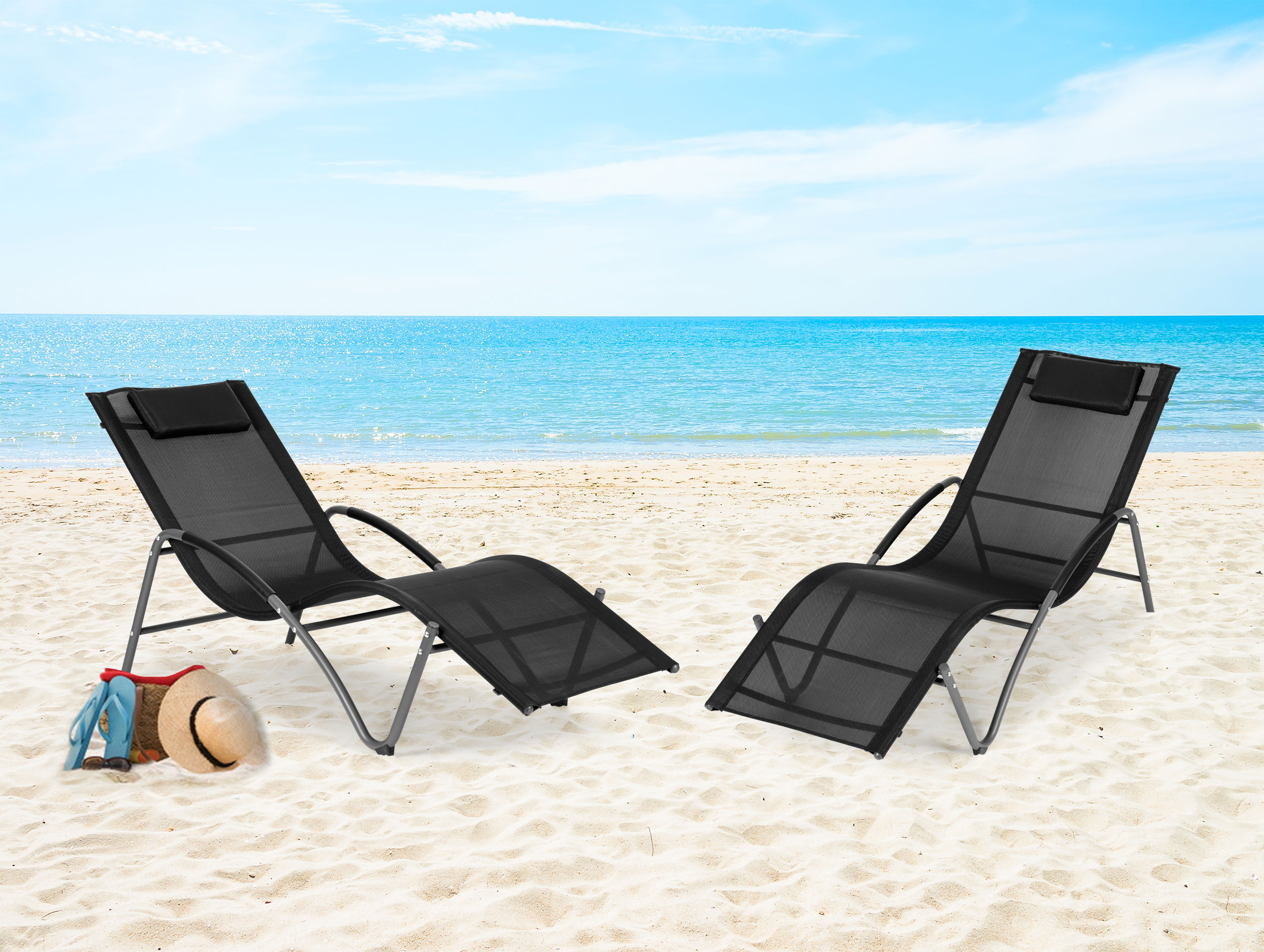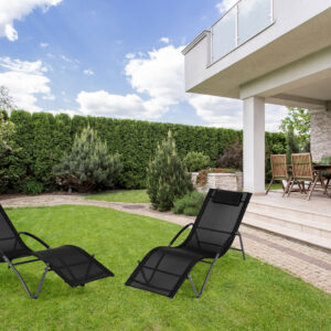 Leżak ogrodowy leżanka zagłówek stalowa konstrukcja czarny MultiGarden