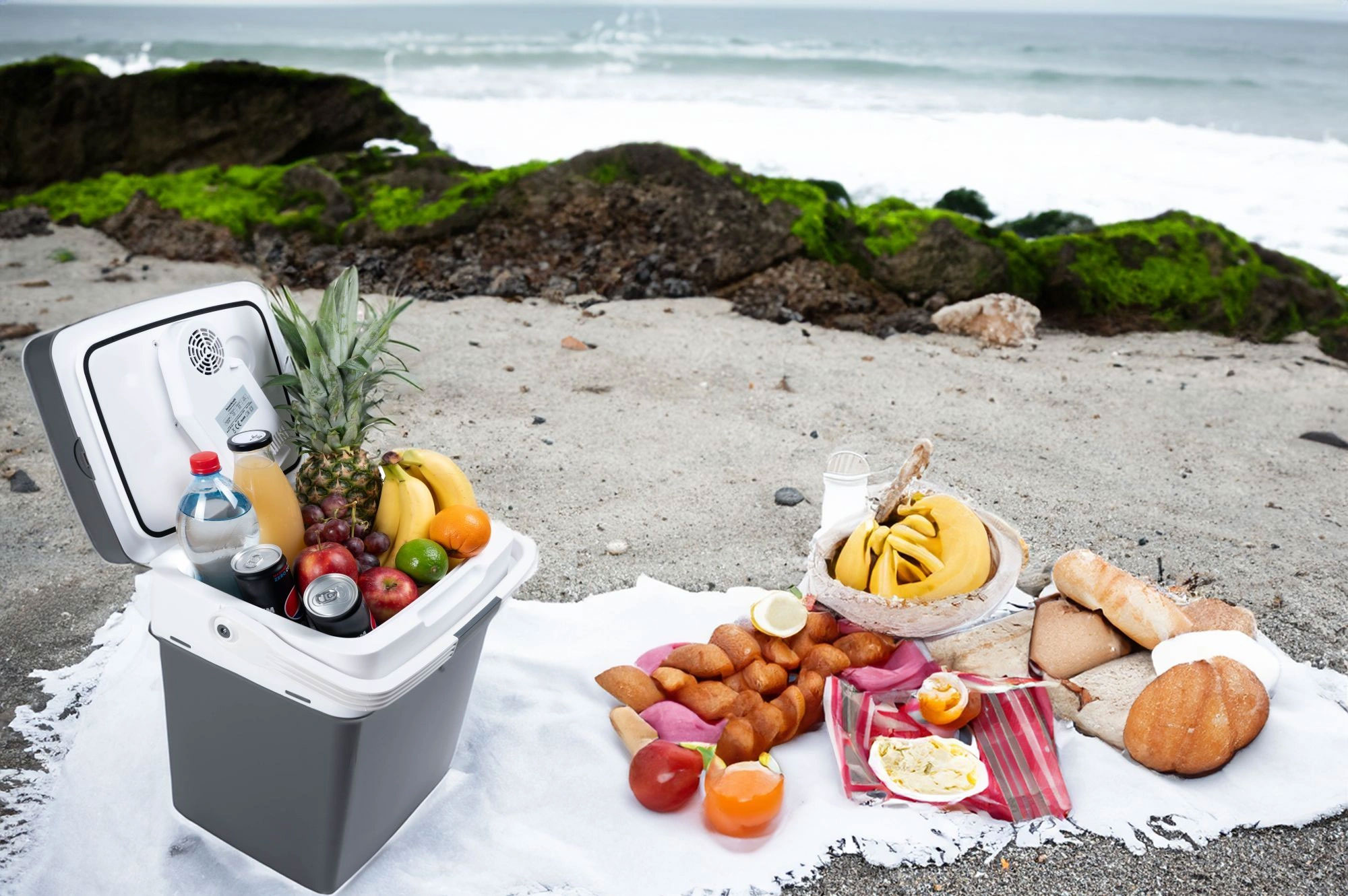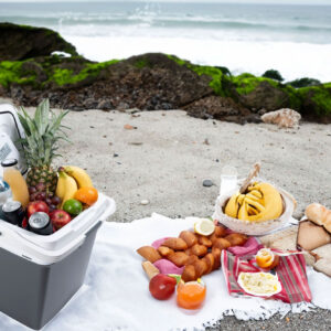 CHŁODZENIE – Dzięki wydajnemu systemowi chłodzenia, lodówka schładza produkty nawet do 20°C poniżej temperatury otoczenia, co sprawia, że idealnie sprawdzi się podczas upalnych dni. Bez względu na to, czy przechowujesz świeże owoce, napoje, nabiał czy przekąski, możesz mieć pewność, że zachowają one świeżość i odpowiednią temperaturę na długi czas. Szybkie chłodzenie zapewnia optymalne warunki przechowywania żywności, co ma kluczowe znaczenie podczas podróży, kempingów czy grillowania na świeżym powietrzu.