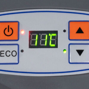 Tryb ECO minimalizuje zużycie energii, dostosowując intensywność pracy lodówki do panujących warunków. Dzięki temu, urządzenie zużywa mniej prądu, co pozwala na wydłużony czas działania na zasilaniu samochodowym lub akumulatorowym.
