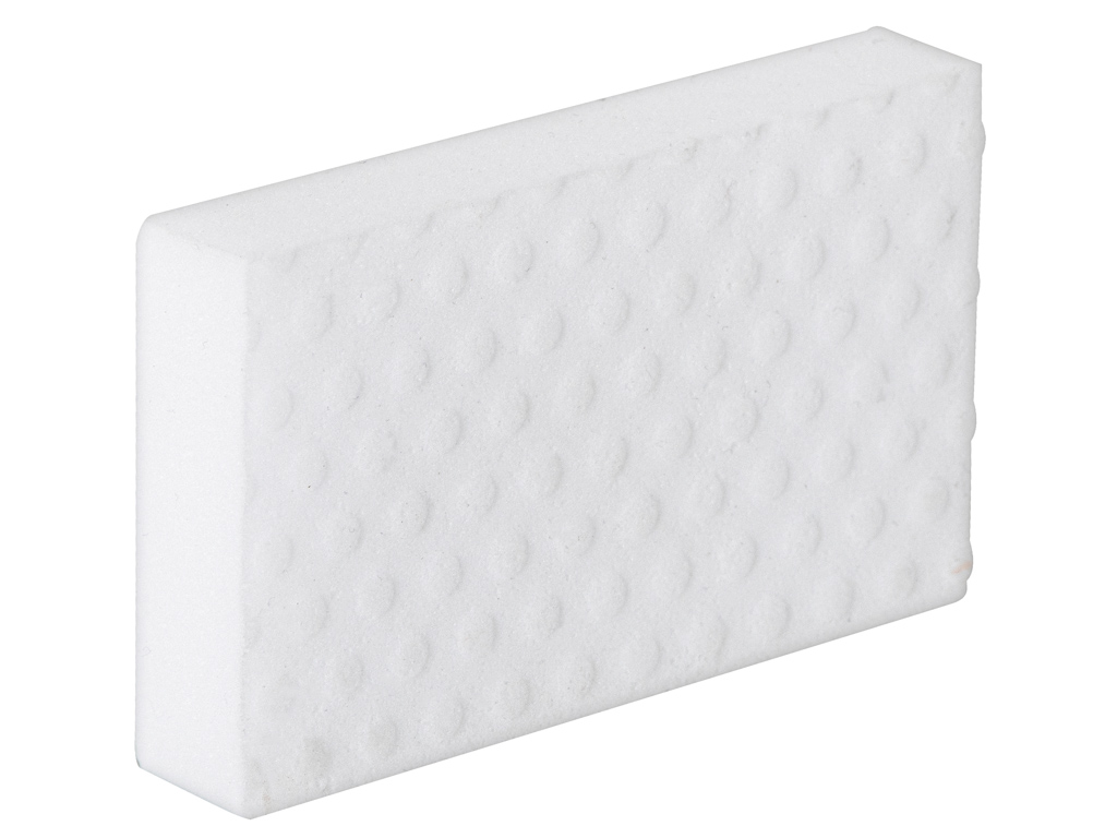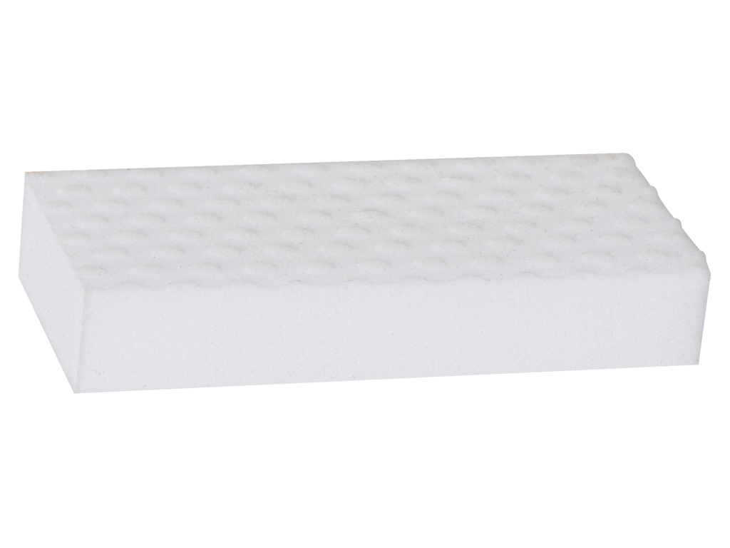 Magiczna gąbka z melaminy na trudne zabrudzenia. Czyści uporczywe zabrudzenia bez dodatkowych detergentów. Idealna do mycia ścian, szafek, szkła czy karoserii. Kolor: biały. Wym. gąbki: 10x6x2cm.