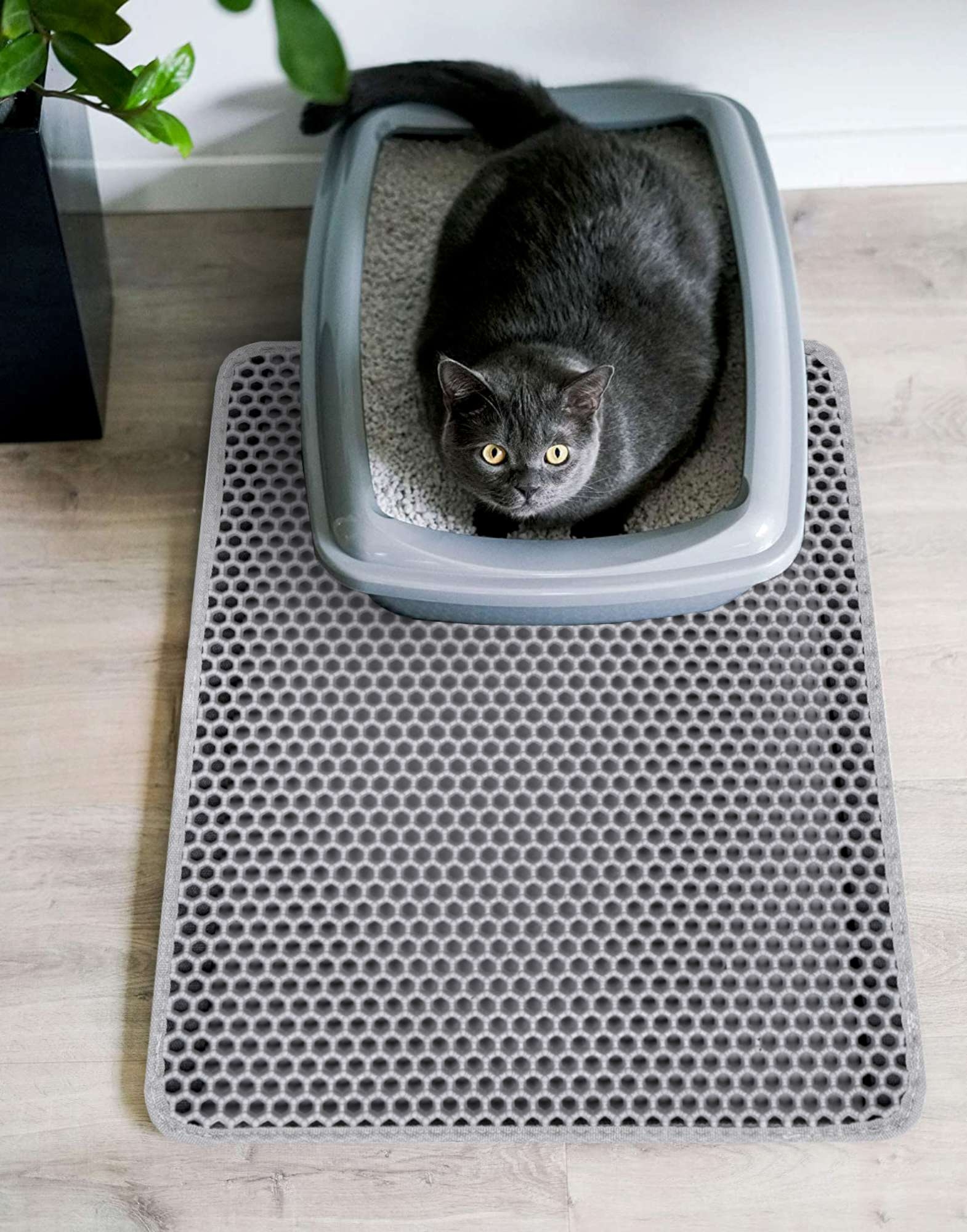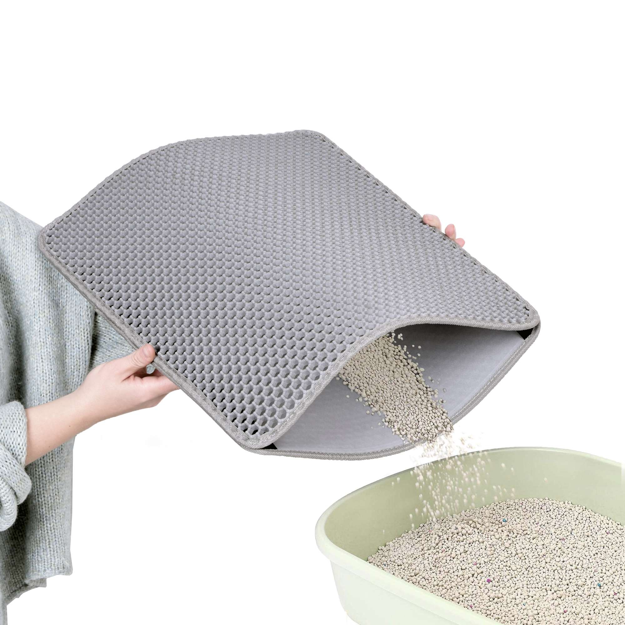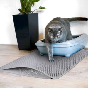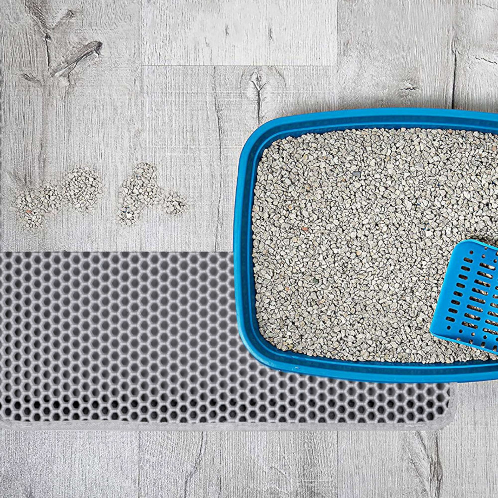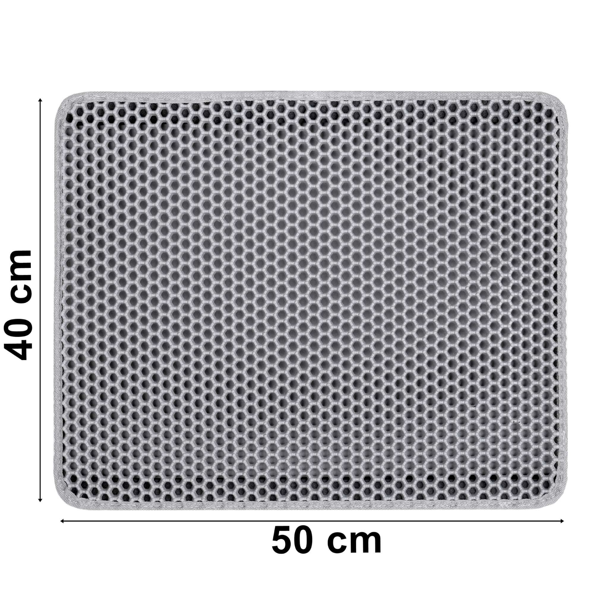 Mata Catsy to niezbędne akcesorium dla właścicieli kotów. Wykonana jest z pianki EVA najwyższej jakości. Pomaga utrzymać czystość wokół kuwety, zapobiegając pozostawianiu przez kota śladów żwirku, który osypuje się z jego łapek po każdym wyjściu z kuwety. Otwory w kształcie plastrów miodu odpowiedzialne są za wyłapywanie resztek żwirku z kocich łapek, dzięki czemu Twoje mieszkanie pozostaje czyste bez konieczności codziennego sprzątania.