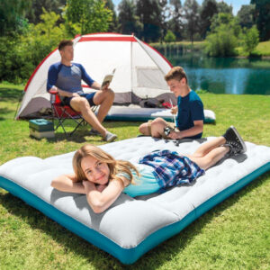 - Materac został zaprojektowany z myślą o wygodnym transporcie i szybkim użytkowaniu. Lekka konstrukcja i kompaktowe wymiary po złożeniu sprawiają, że bez trudu zmieści się w torbie czy bagażniku. Można go błyskawicznie napompować i spuścić powietrze, a następnie łatwo przechować lub zabrać w kolejną podróż.