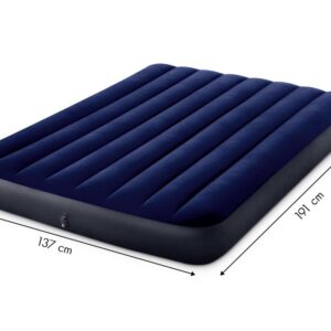 Materac welurowy Full DURA-BEAM INTEX o wymiarach 191x137x25 cm jest idealny do wypoczynku jednej, a nawet dwóch osób. Wykonany z wytrzymałego tworzywa PVC, na górze został pokryty przyjemnym w dotyku wodoszczelnym materiałem welurowym. Całość w przyjemnej, niebieskiej kolorystyce będzie pasowała do każdego wnętrza. Zawór bostoński pozwoli w minutę spuścić powietrze, następnie złożyć materac i schować go do szafy.