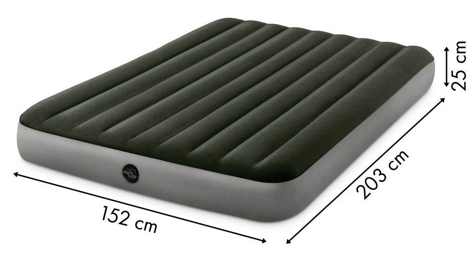 Materac welurowy INTEX o wymiarach 203x152x25 cm jest idealny do wypoczynku 2 osób. Wykonany z wytrzymałego tworzywa PVC, na górze został pokryty przyjemnym w dotyku, wodoszczelnym materiałem welurowym. Całość w przyjemnej, zielonej kolorystyce będzie pasowała do każdego wnętrza.