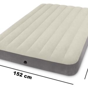 Materac welurowy INTEX o wymiarach 203x152x25 cm jest idealny w podróży, hotelu, czy na kempingu. Wykonany z wytrzymałego tworzywa PVC, na górze został pokryty przyjemnym w dotyku, wodoszczelnym materiałem welurowym.